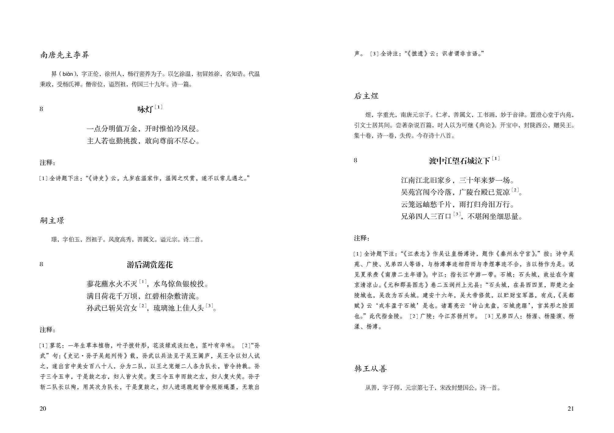 六、为方便一般读者阅读,我们在每首诗后加上了简注,多引用前修成果,未及一一标明,然敬意永驻。