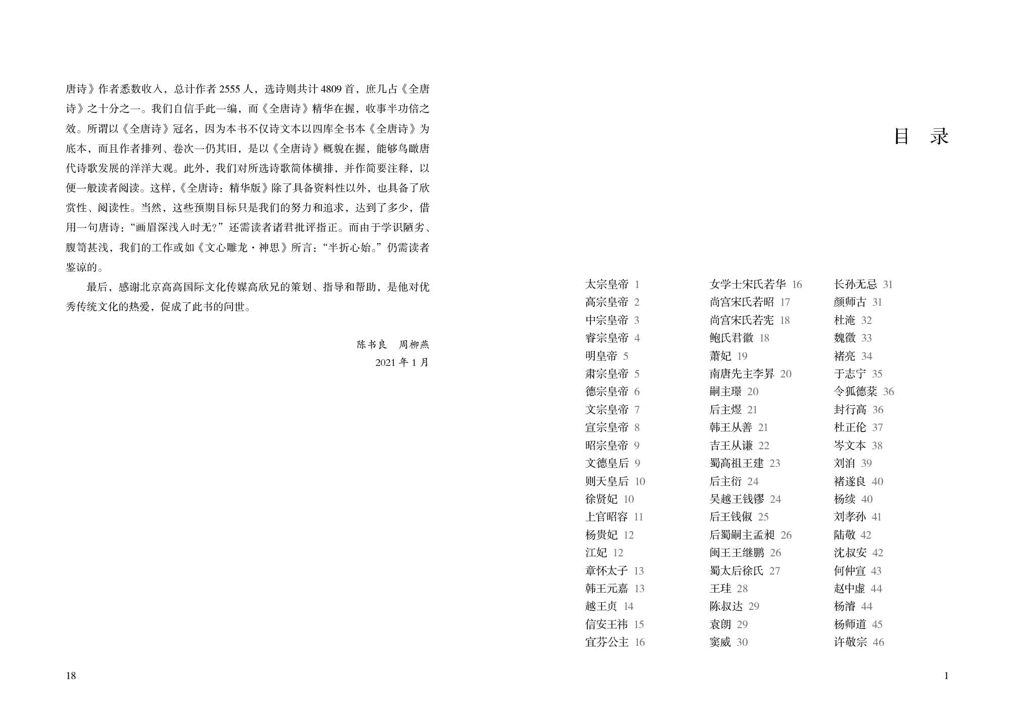 三、为反映《全唐诗》全貌,凡《全唐诗》作者悉数收入,总计作者2555人,得诗4809首,庶几占《全唐诗》之十分之一。