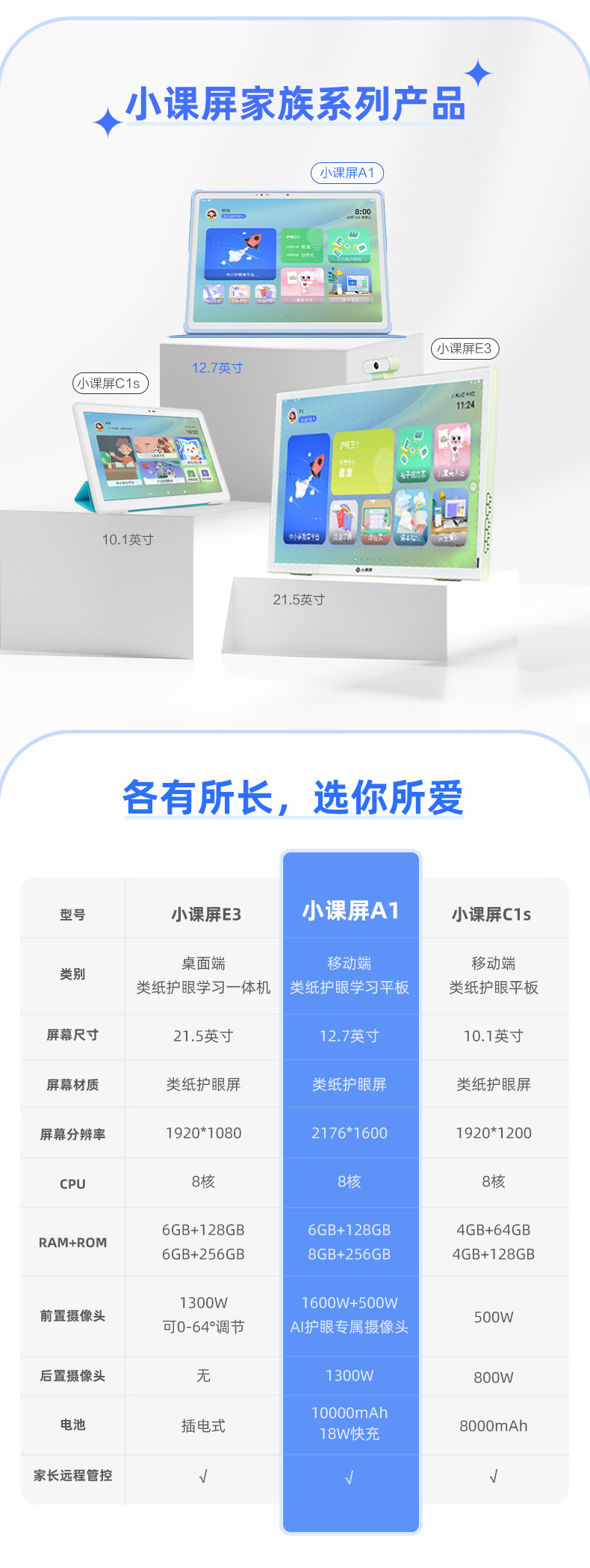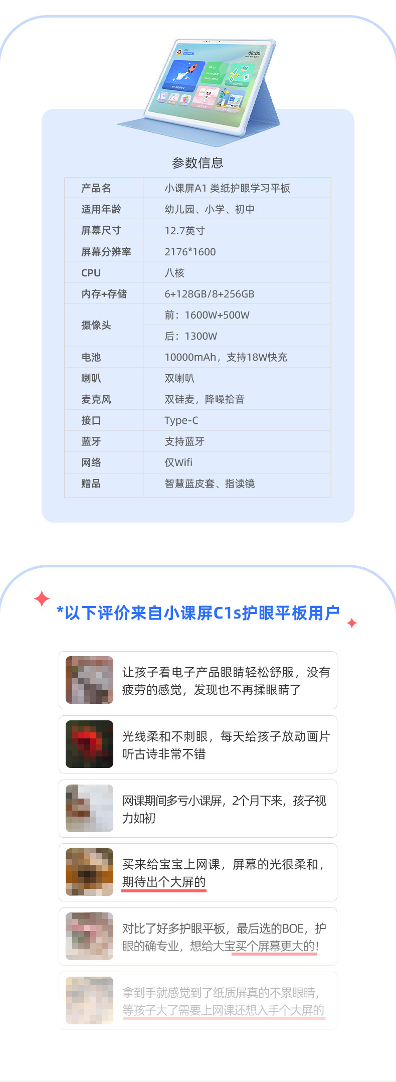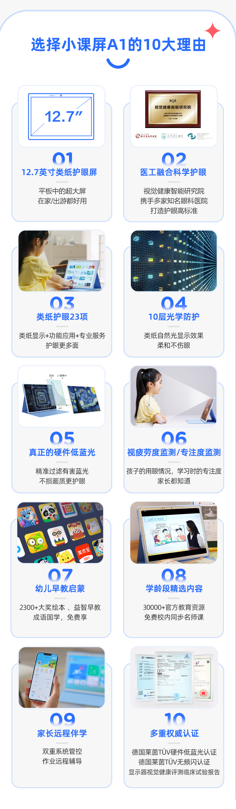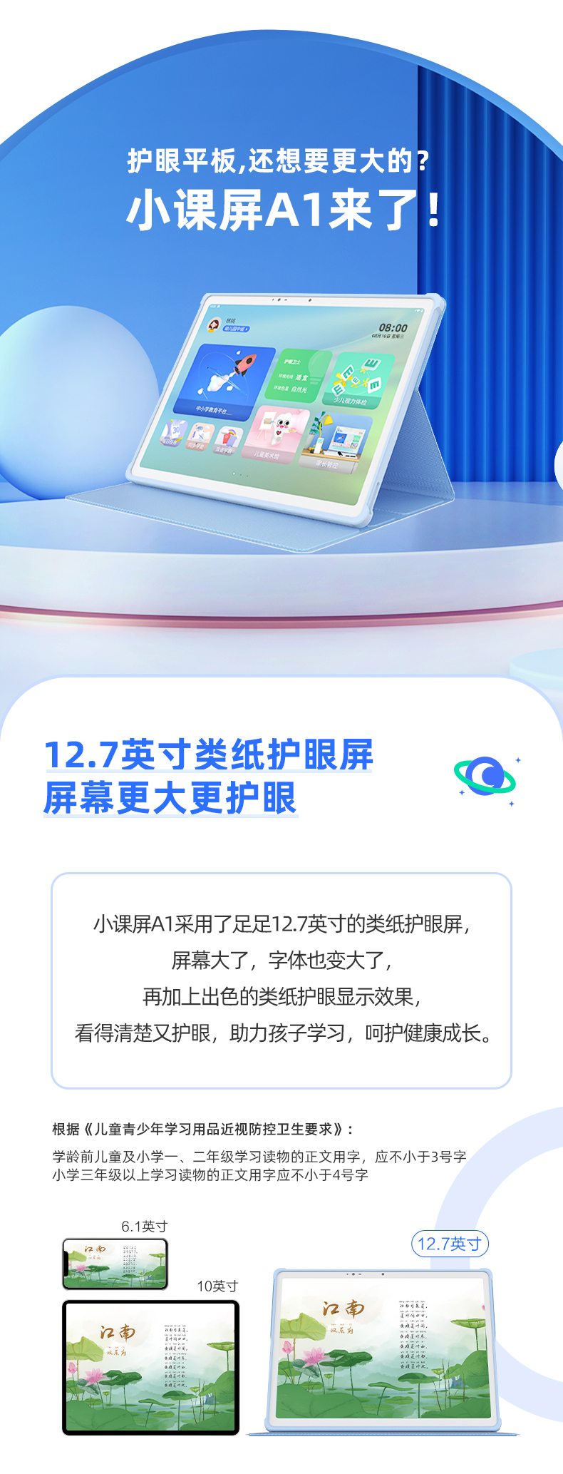 [小课屏A1类纸护眼学习平板]12.7英寸大屏|儿童新高配|类纸护眼23项|学习资源优|家长好管控 如风生活特惠