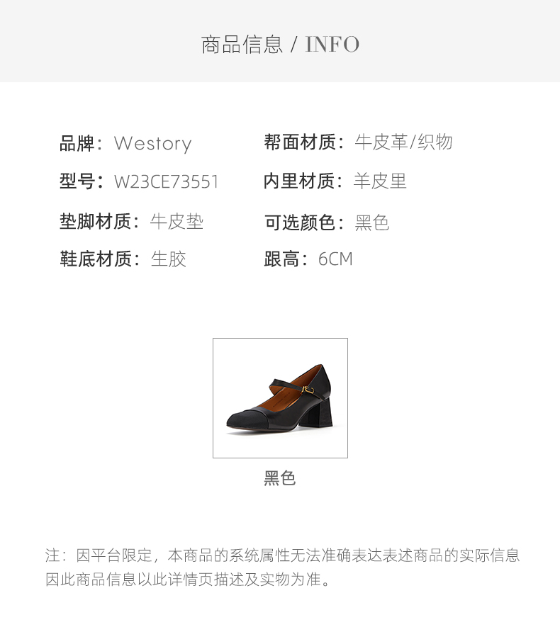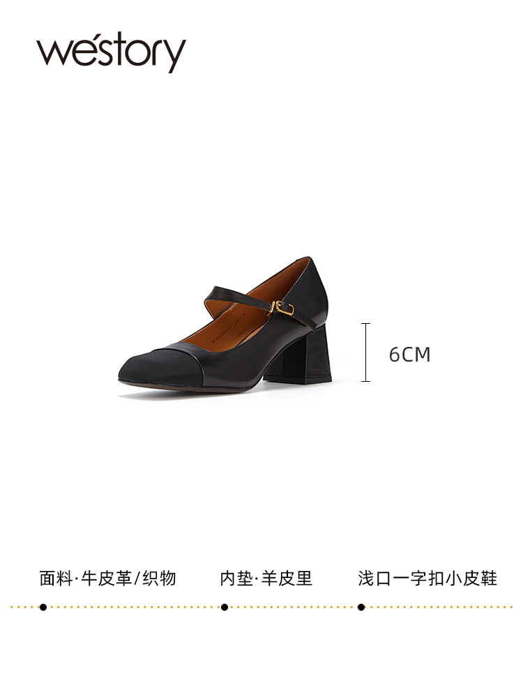 westory2023秋季小个子增高韩版时尚浅口一字带厚底玛丽珍W23CE73551