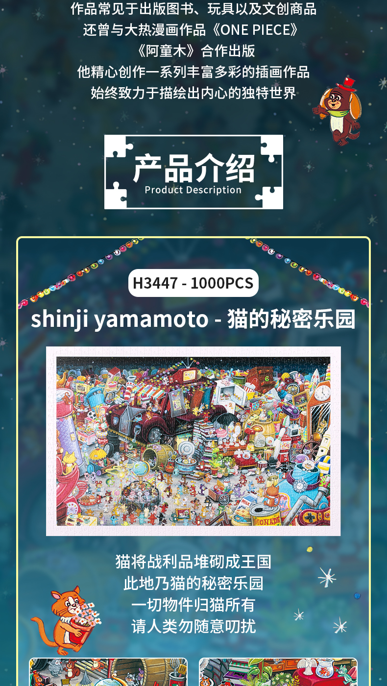 【折扣商品 不退不换】1000片 平面塑料拼图 H3447 shinji yamamoto-猫的秘密乐园