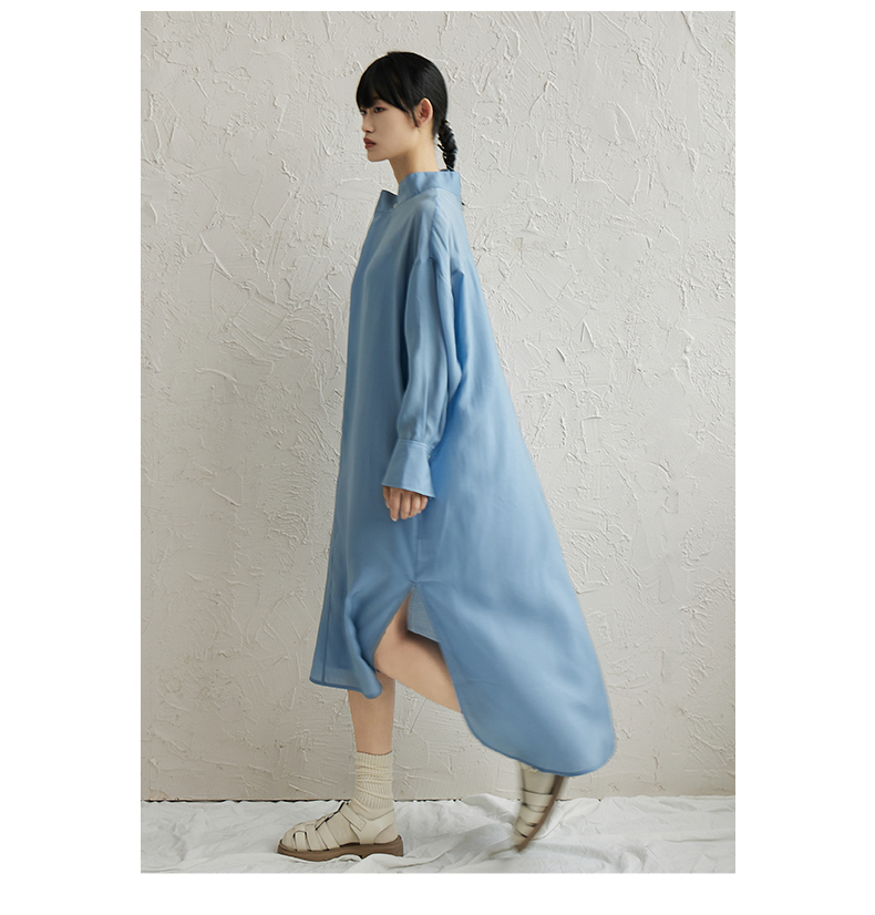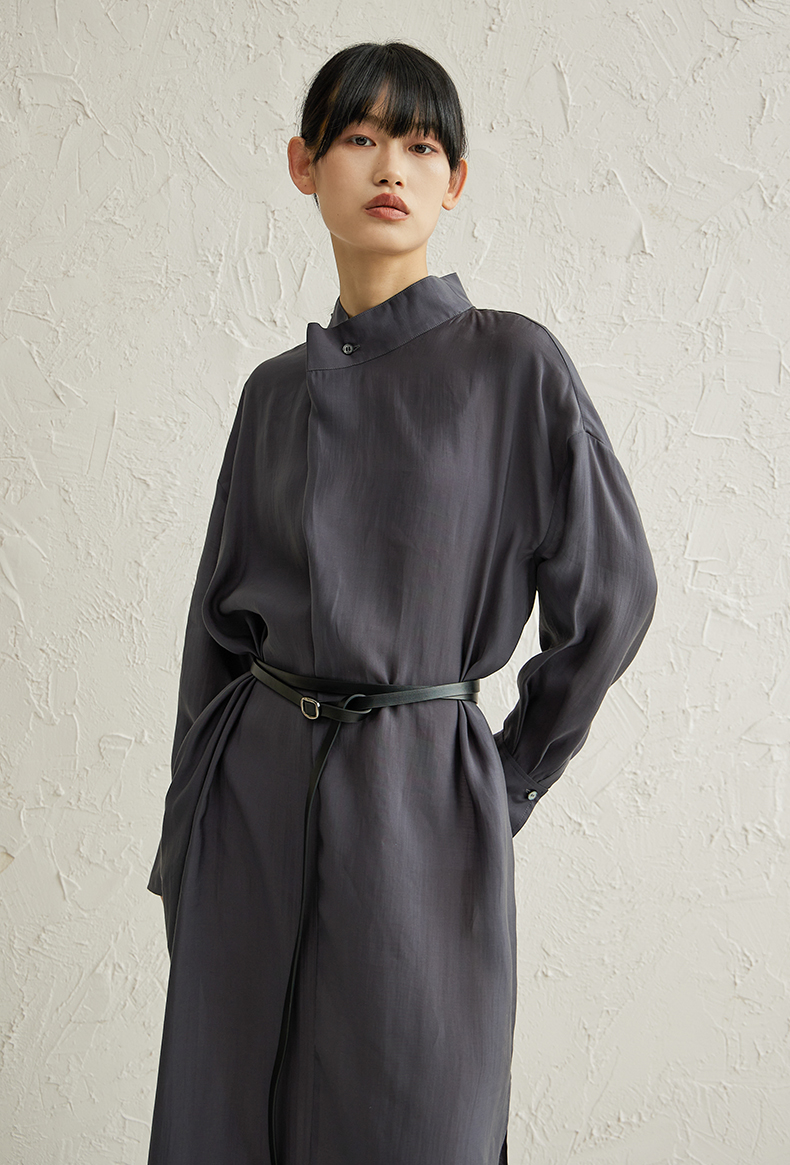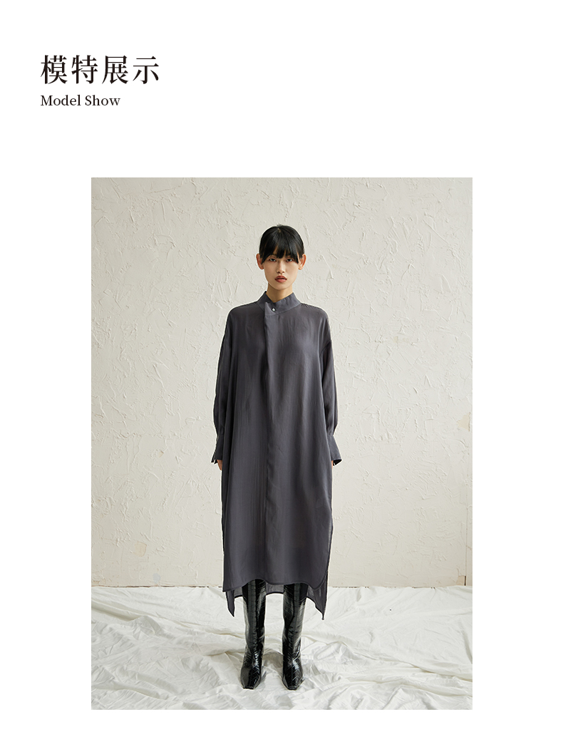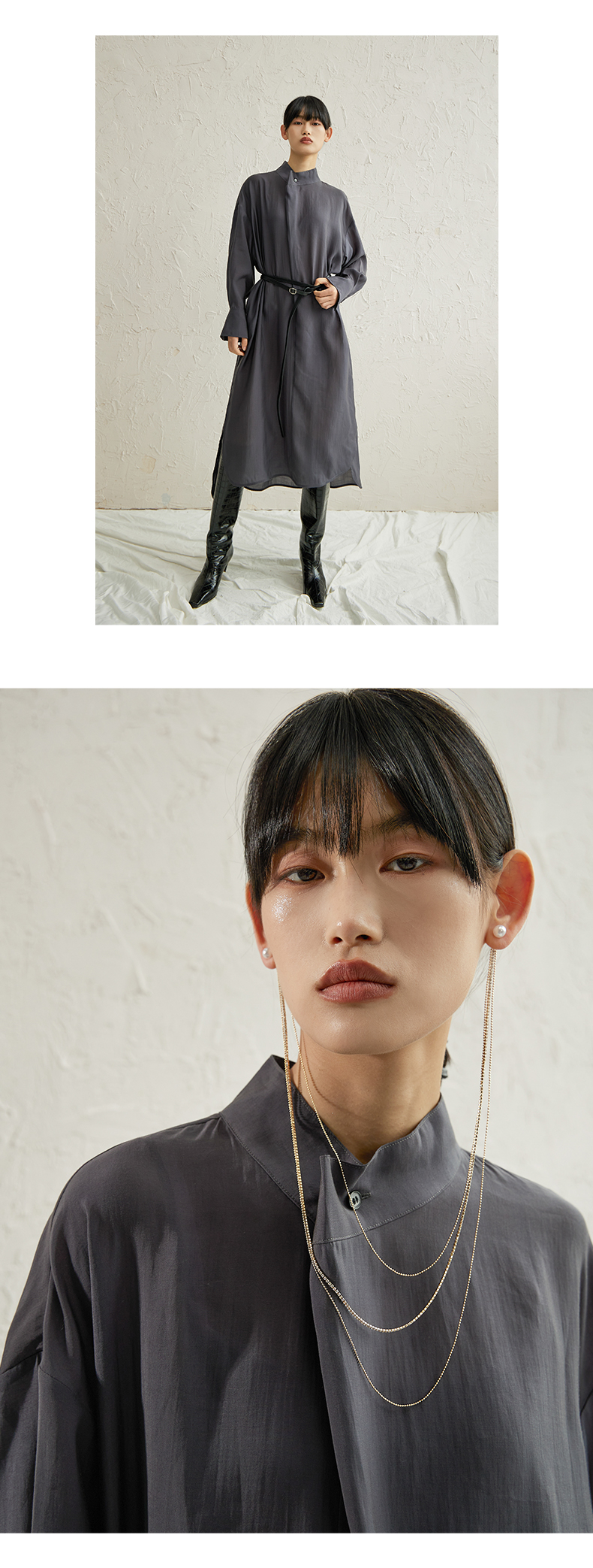 oldcolour天丝立领连衣裙早秋女新款高级感慵懒风长袖裙子