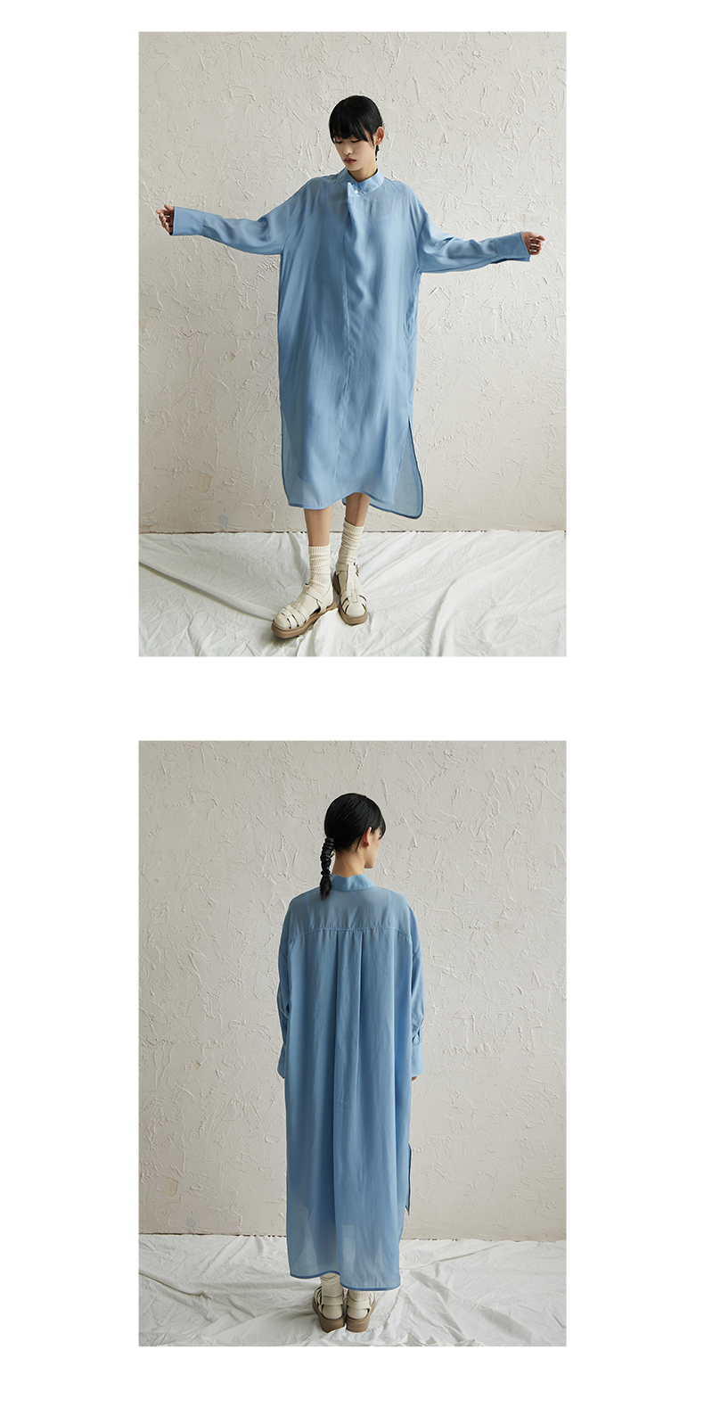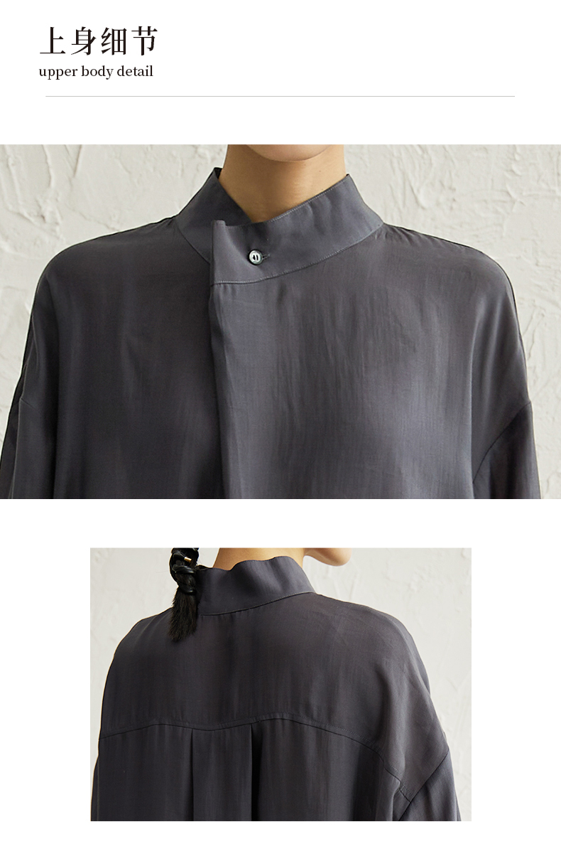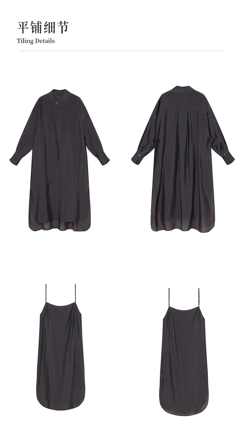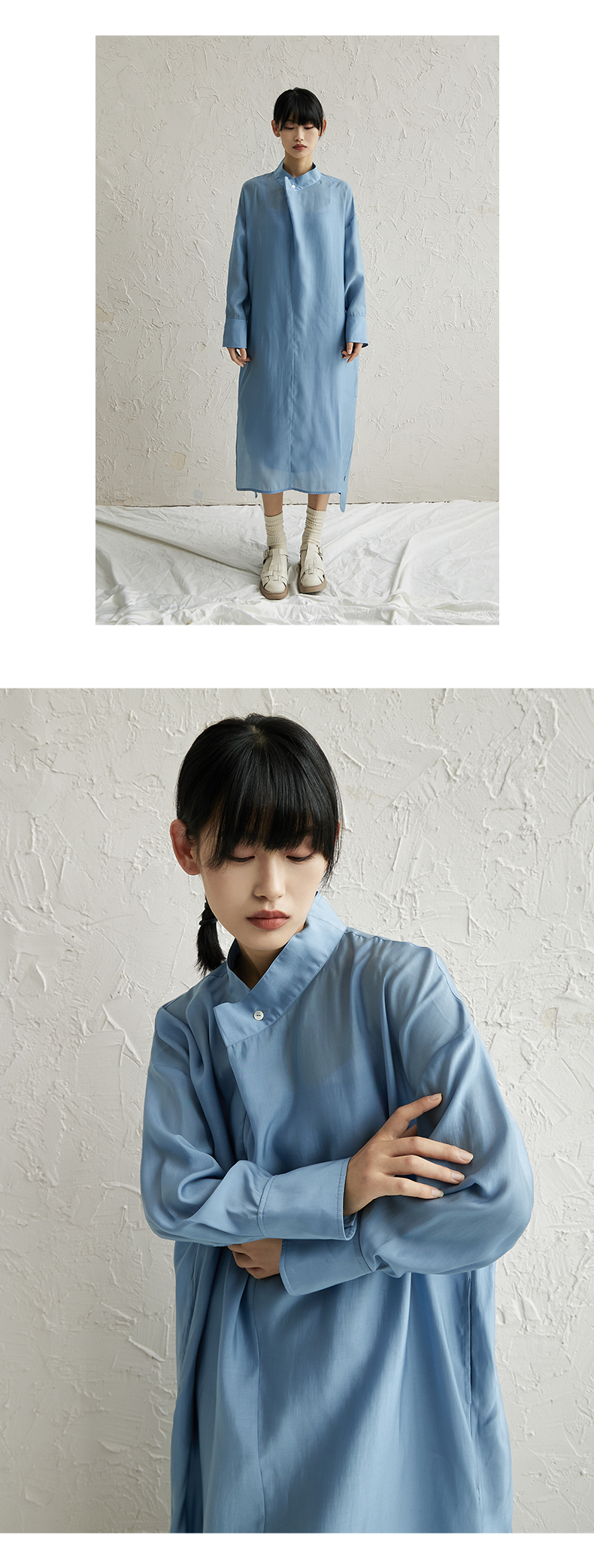 oldcolour天丝立领连衣裙早秋女新款高级感慵懒风长袖裙子