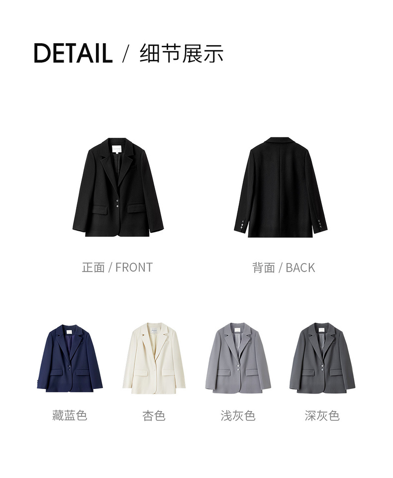 【内购】尚都比拉面试单排两粒扣职业正装易打理通勤职场教师穿搭西装外套-153XC8811X