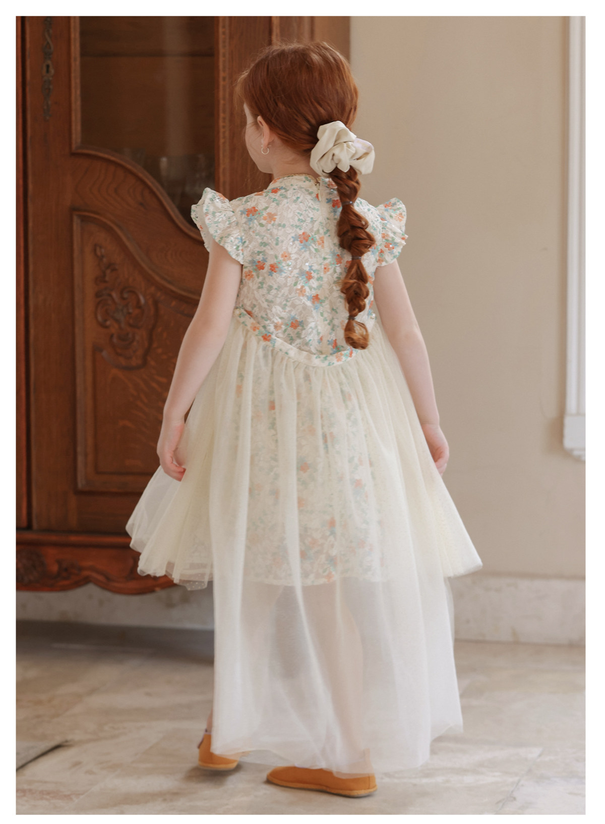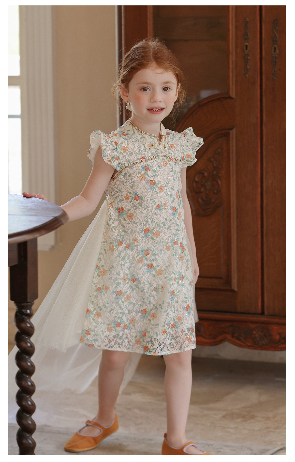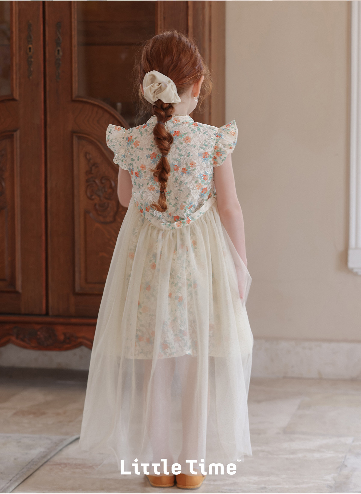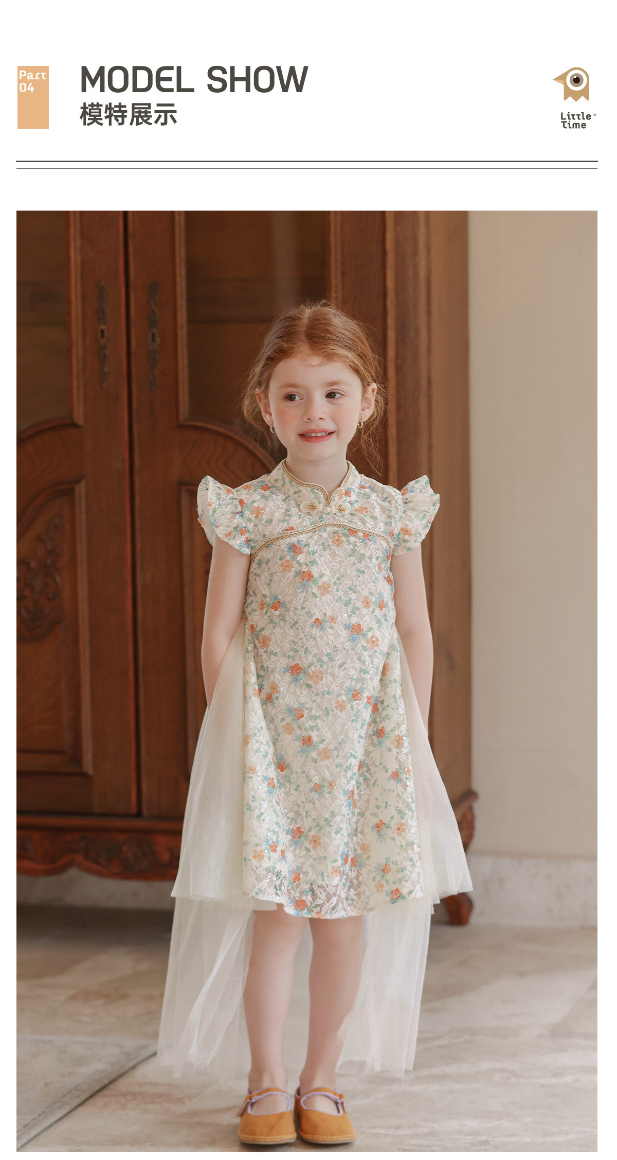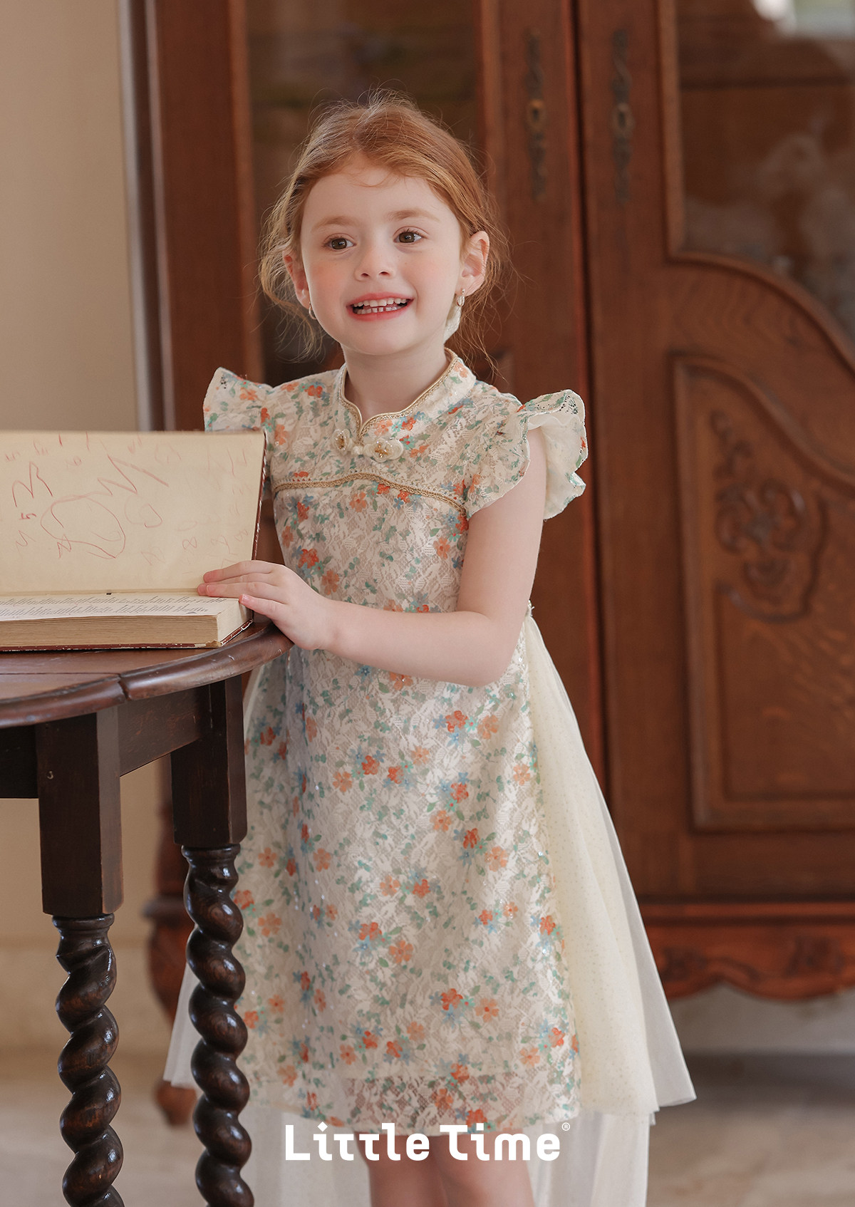 littletime女童旗袍2026夏新款儿童时尚碎花连衣裙高定国风公主裙
