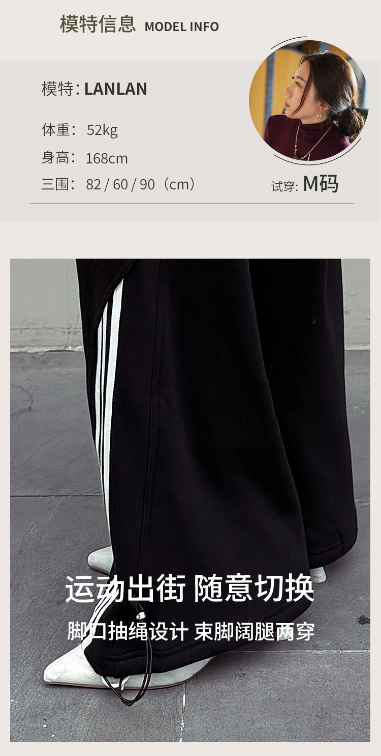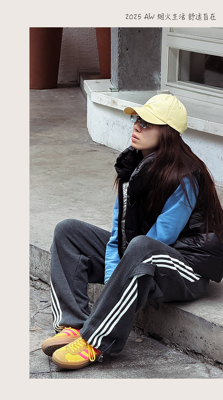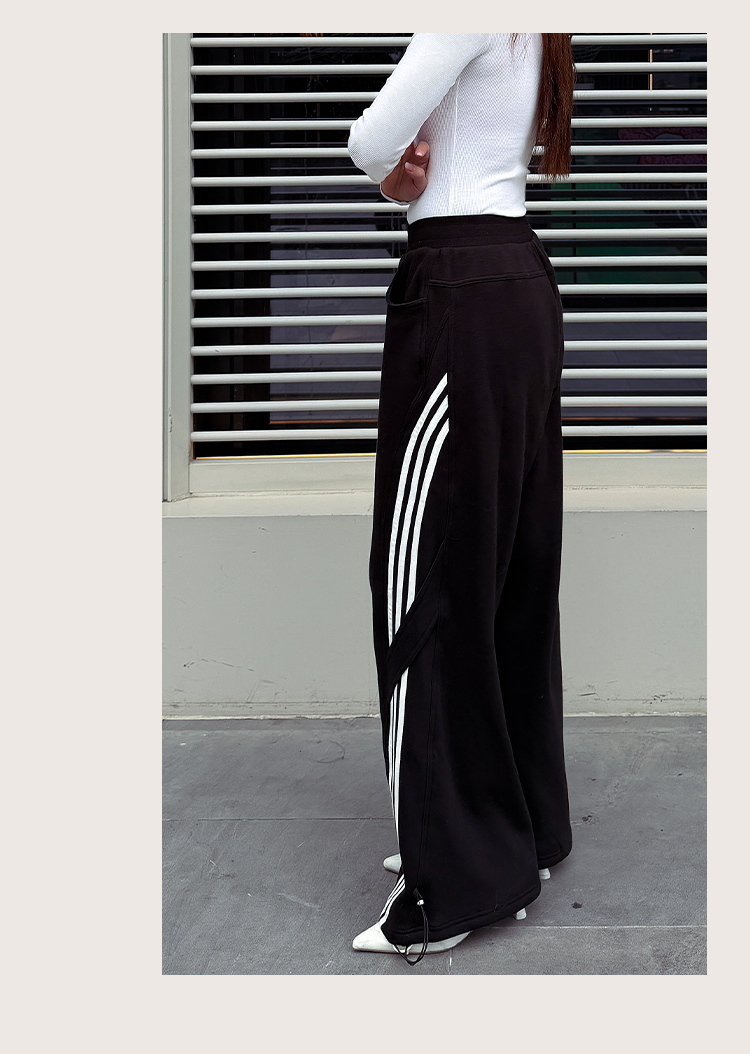 【加绒】美式复古伞兵裤 阔腿+束脚两穿 侧边条纹撞色 三条杠宽松直筒运动休闲裤