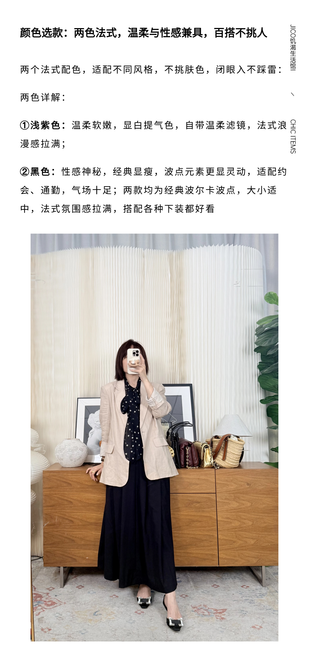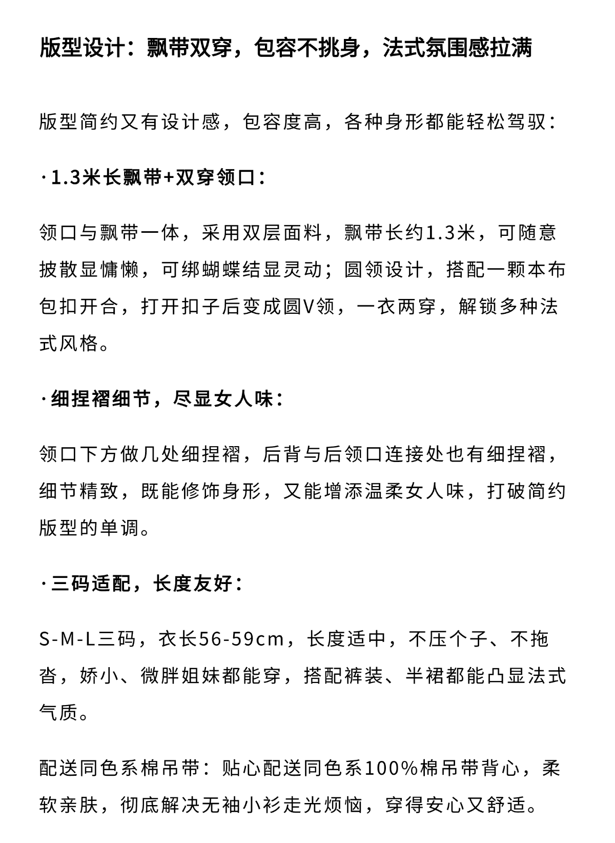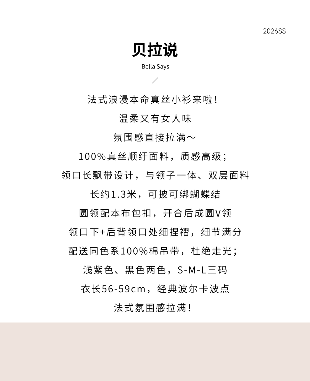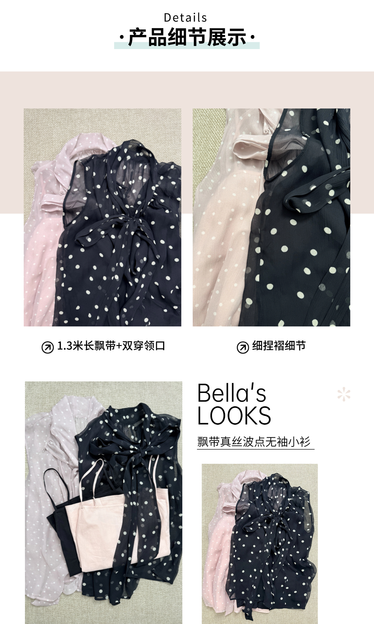 且听风吟 法式波尔卡经典浪漫波点 飘带真丝波点无袖小衫 真丝顺纡 配送全棉吊带背心