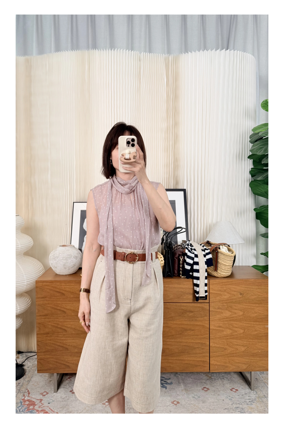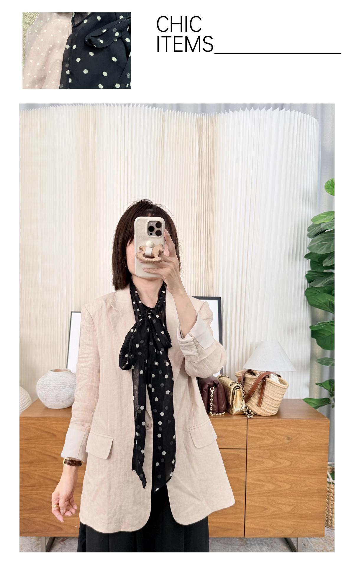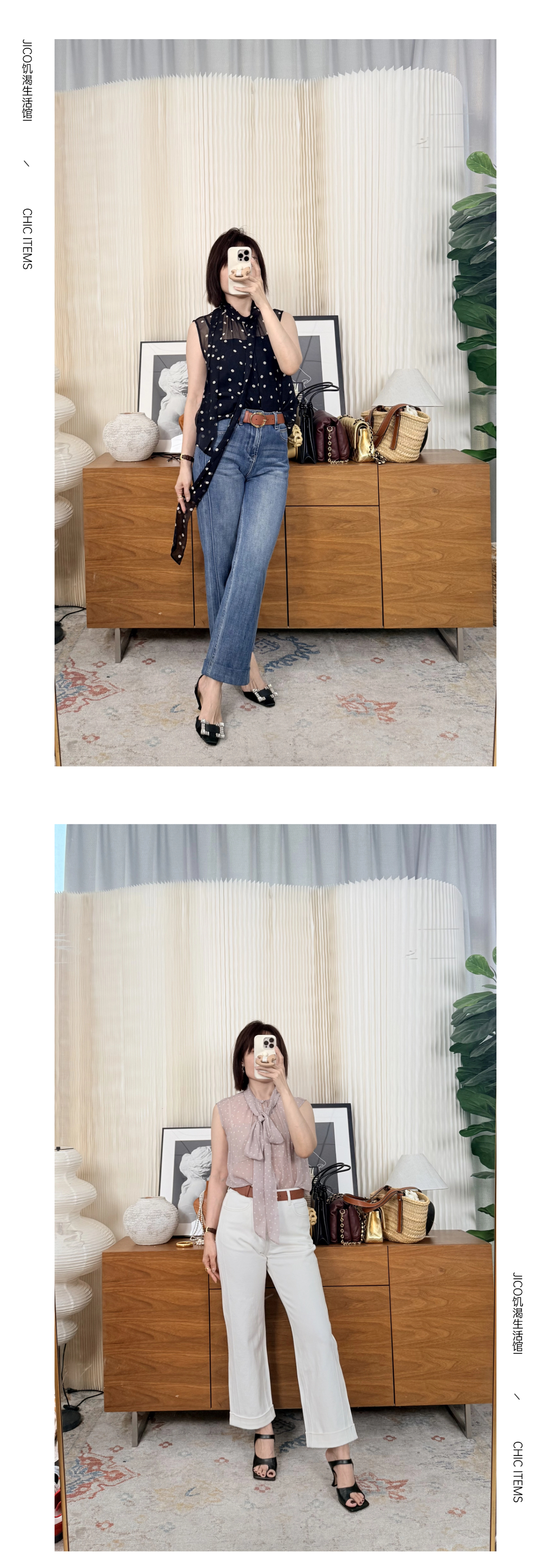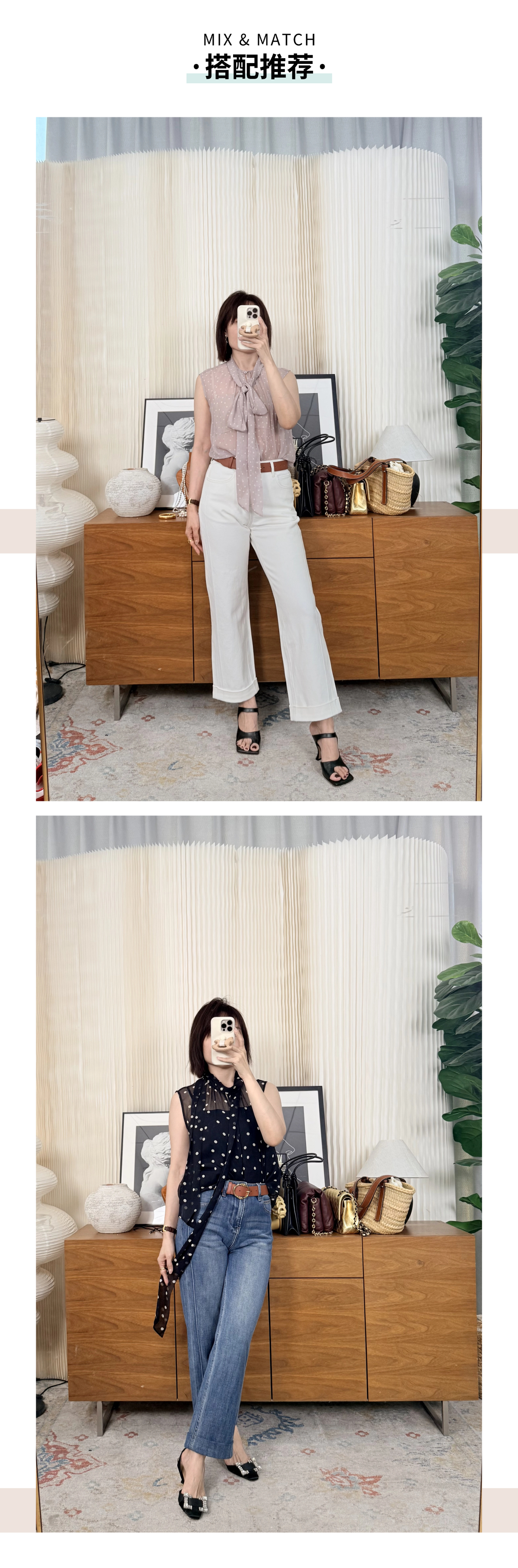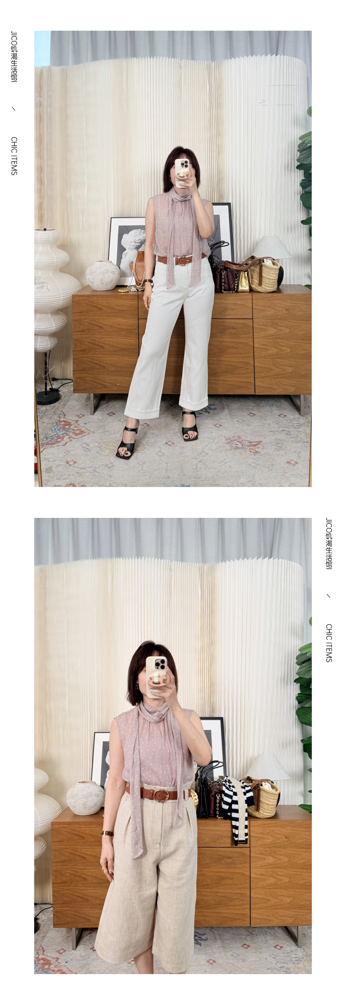 且听风吟 法式波尔卡经典浪漫波点 飘带真丝波点无袖小衫 真丝顺纡 配送全棉吊带背心
