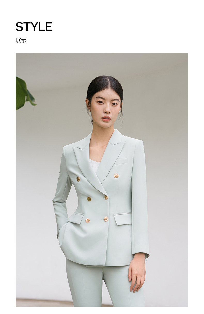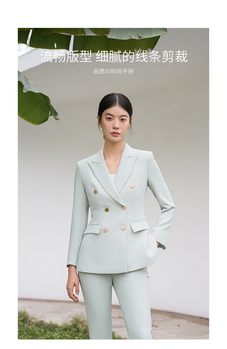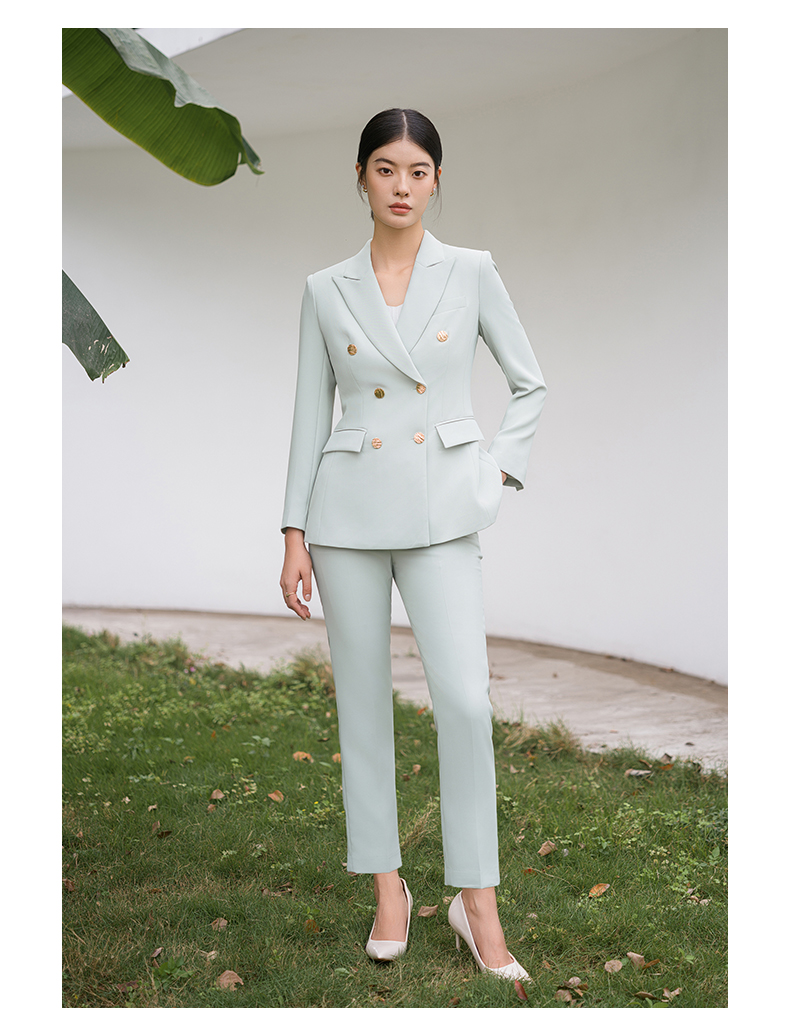 IWY/浅绿色高端通勤干练职业西服套装女艺考主持人面试装通勤干练C11385+P11385