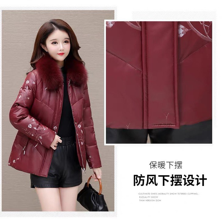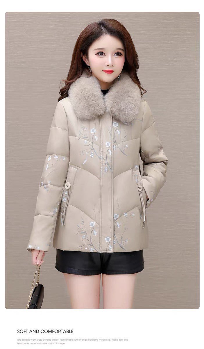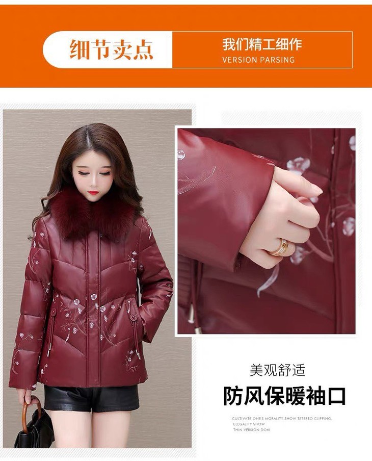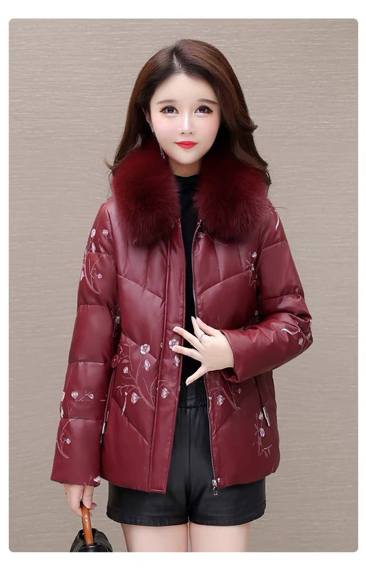 2025新款妈妈冬款羽绒服,中式绣花国风皮保暖毛领中长款 商品图0