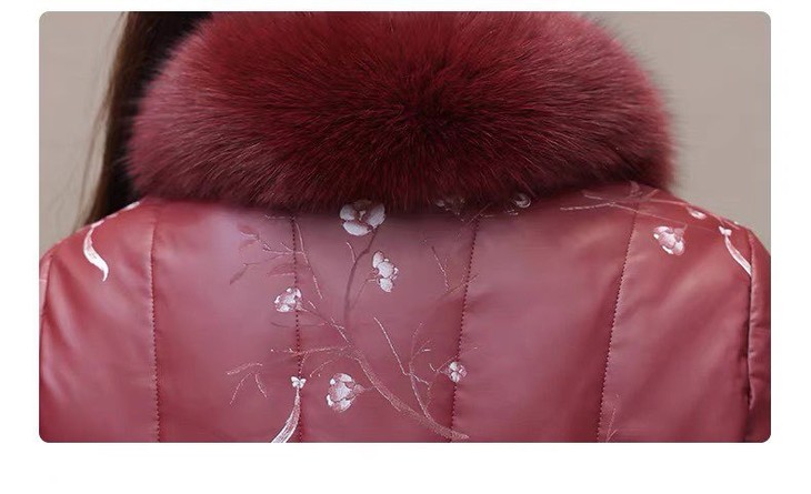 2025新款妈妈冬款羽绒服,中式绣花国风皮保暖毛领中长款 商品图4