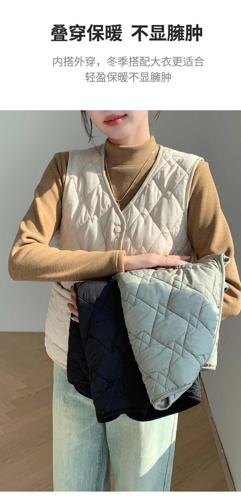 【秋冬保暖,精致不臃肿】三色排扣小马甲 三层加厚 防风保暖锁温 修身显瘦 内搭外穿都合适