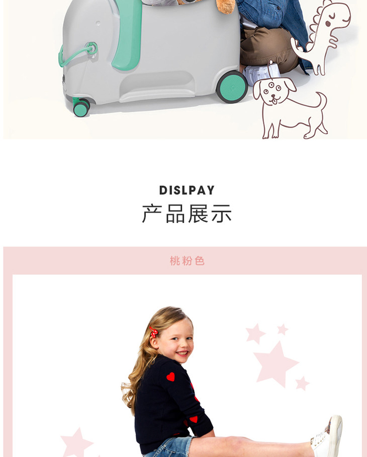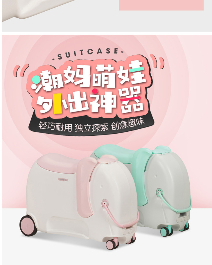 新秀丽儿童骑行箱小孩可坐骑拉杆箱卡通带娃PP材质旅行箱 CT2