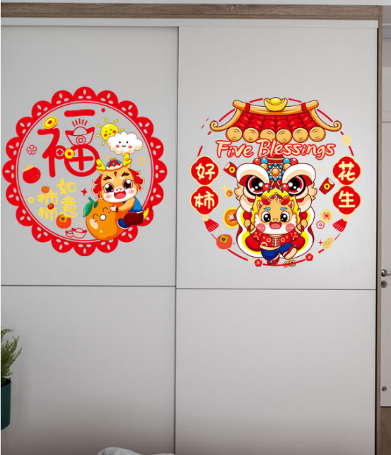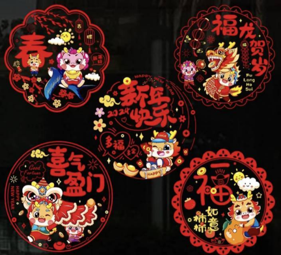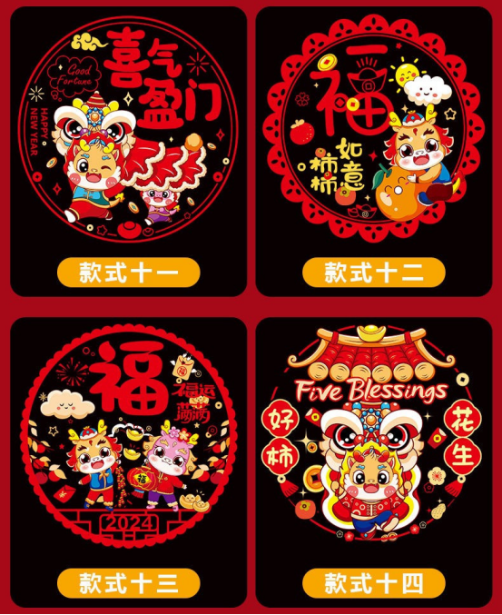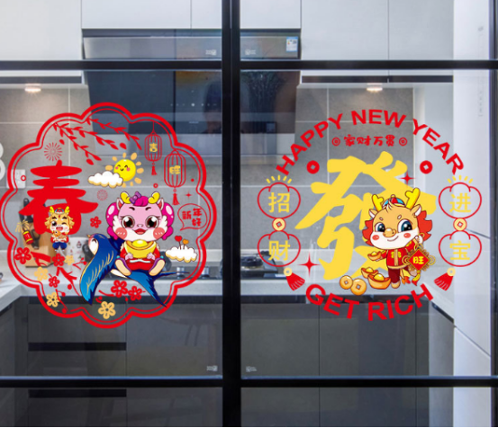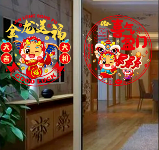 过大年,贴窗花,窗花就是我的家 过家家,吹喇叭,腊月家家贴窗花……” 冬日渐冷,年味渐浓,2024年进入倒计时! 你是否厌倦了单调的窗户,想要一些别样的风景? 这款龙年窗花静电贴,拥有清晰美丽的图案,为你的窗户带来浓厚的艺术气息。 双面设计,无论是喜欢热闹还是简洁,都能满足你的需求。 龙年双面静电窗花贴,让你的窗户焕发新年气息!