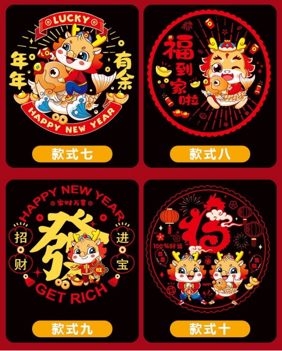 龙年双面静电窗花贴不仅美观,而且易于安装和移除,不会留下任何痕迹 无论是在客厅、卧室还是厨房,它们都能为你的空间带来独特的装饰效果! 不要错过这个机会,让龙年双面静电窗花贴为你的家居增添福气和喜庆氛围~