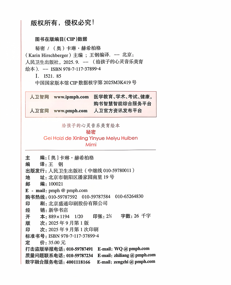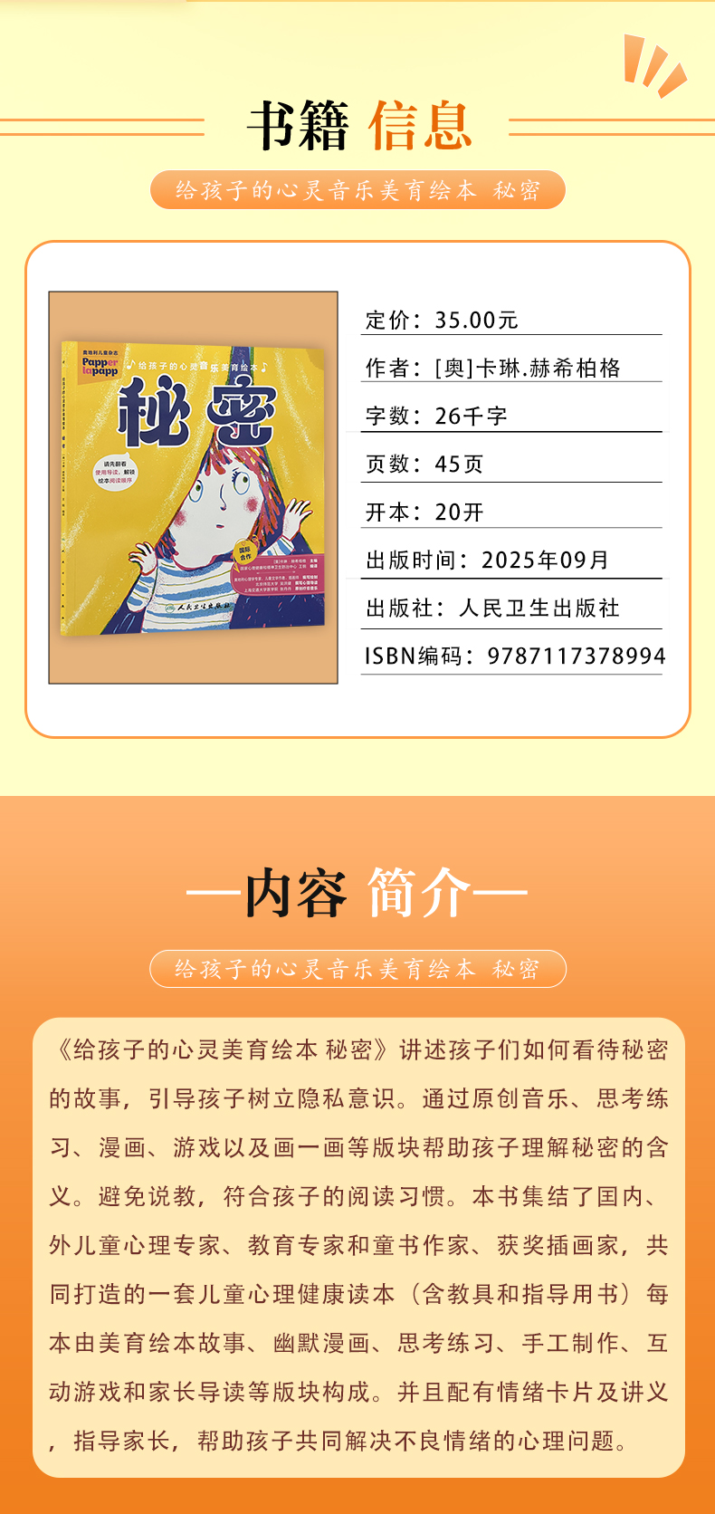 给孩子的心灵音乐美育绘本 秘密 卡琳.赫希柏格 配有情绪卡片及讲义指导家长帮助孩子共同解决不良情绪的心理问题 人民卫生出版社