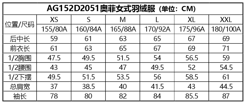 Acome阿珂姆/奥菲女式羽绒服AG152D2051