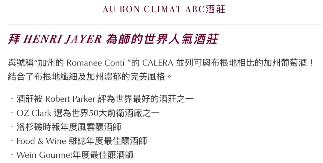 一说到当今令全球富豪疯狂的美酒,那绝对非勃艮第酒王罗曼尼康帝莫属,这几年更是涨价到连老富们都开始怀疑人生,而近些年在美国纳帕竟然出现了一个被誉为“加州的罗曼尼康帝”的新世界勃艮第范儿神酒Au Bon Climat(以下简称ABC),顿时火爆全球各大米其林餐厅和私人酒局。
