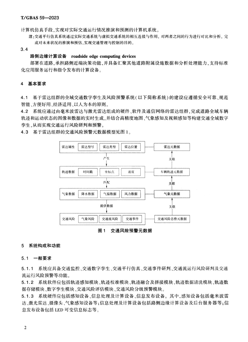 桥岛隧智能运维数据 基于雷达组群的道路全域交通数字孪生及风险预警T/GBAS 59—2023