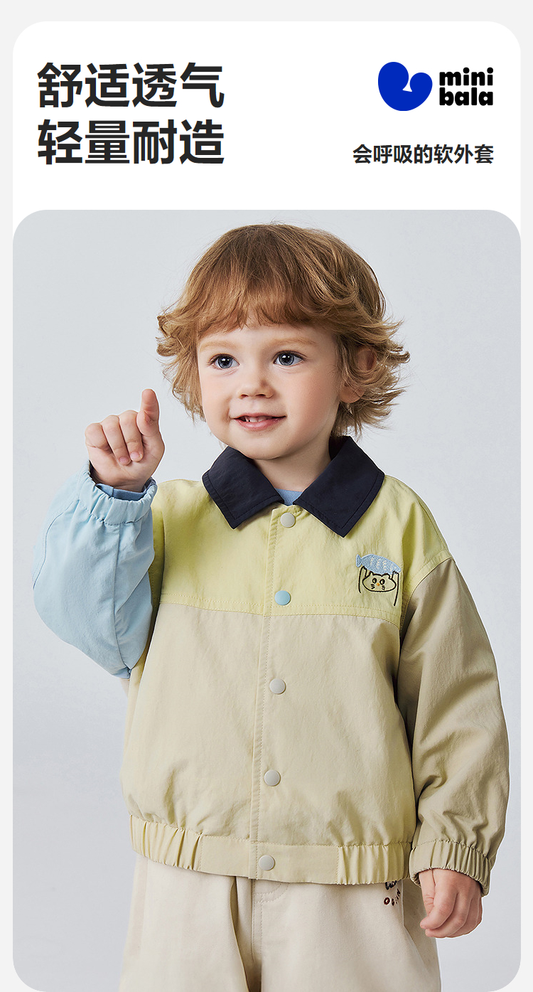 迷你巴拉巴拉男童翻领外套宝宝外衣轻量耐磨拼色上衣2026春新品