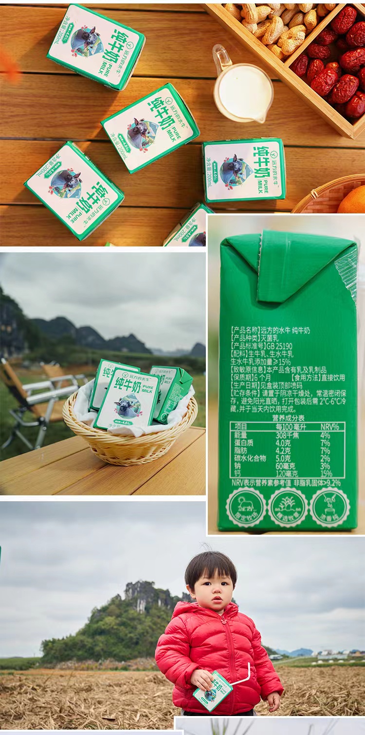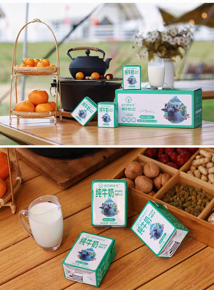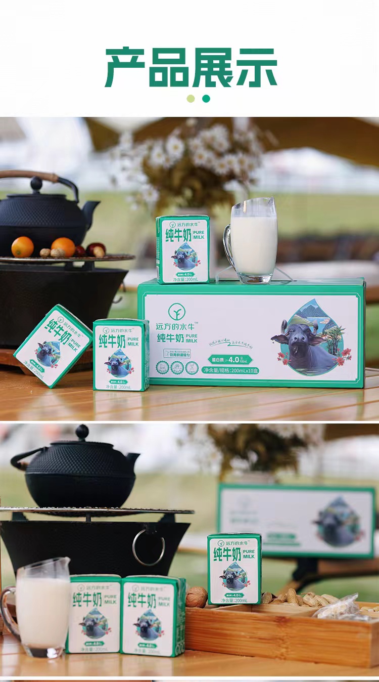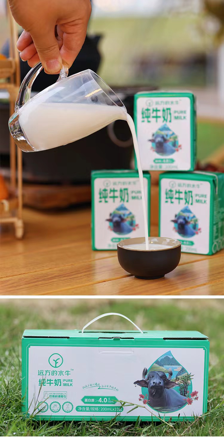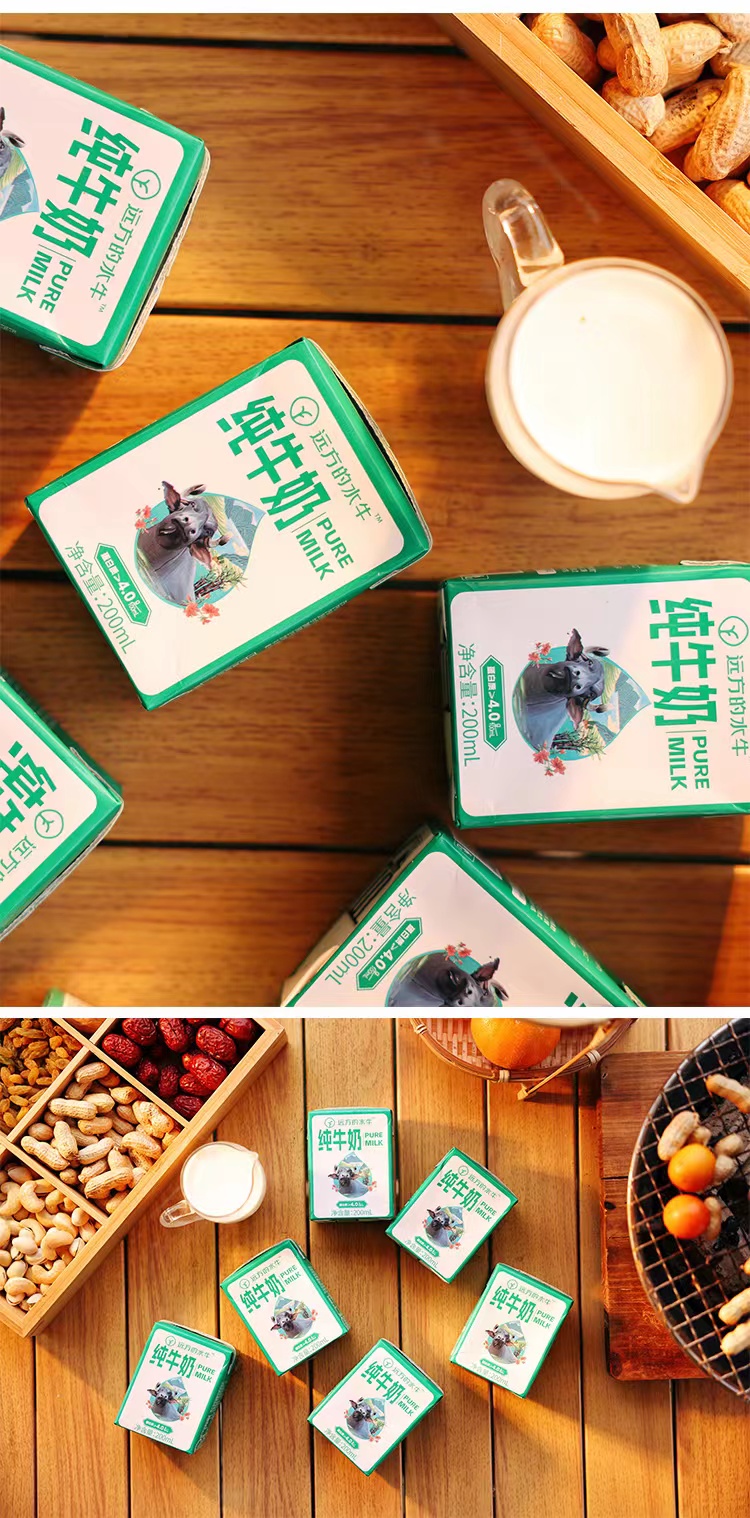 纯水牛奶200ml*10盒/箱,4.0g优质牛乳蛋白,冰激凌般浓郁口感
