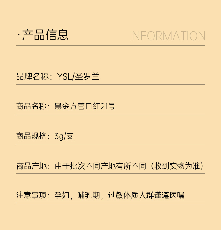 【跨境】YSL 圣罗兰 黑金方管口红 3g #21
