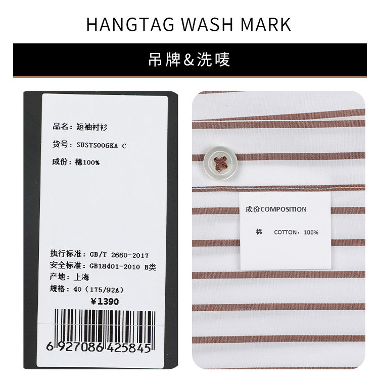 callisto浅调燕麦卡其条纹亲肤棉短袖衬衫