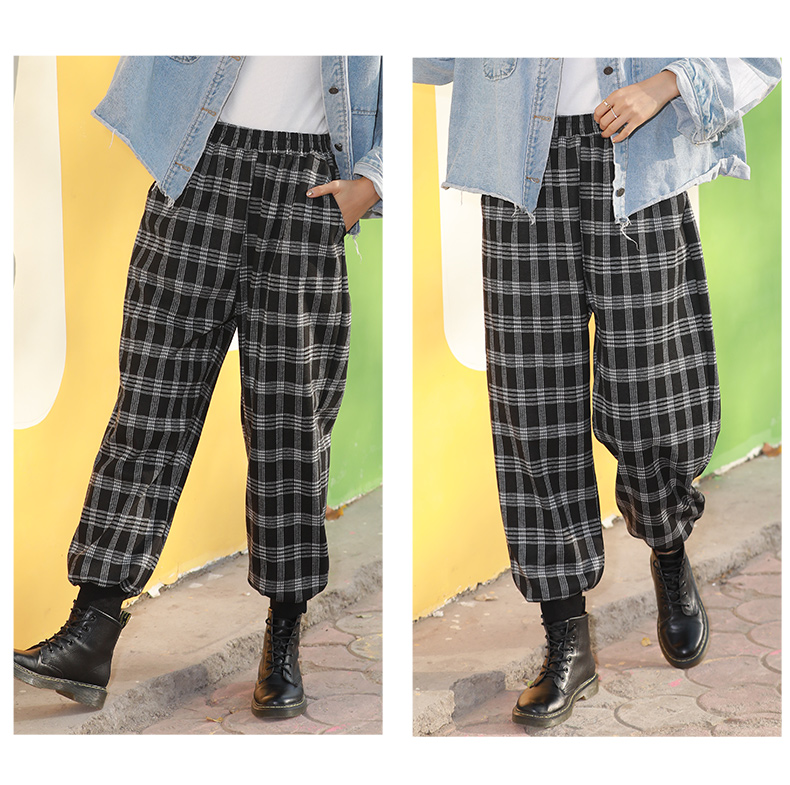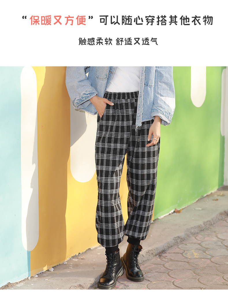 【亏本清仓 不退不换】龙之涵 亲子款提花格加绒卫裤 中大童休闲保暖裤子 灯笼裤 A类标准