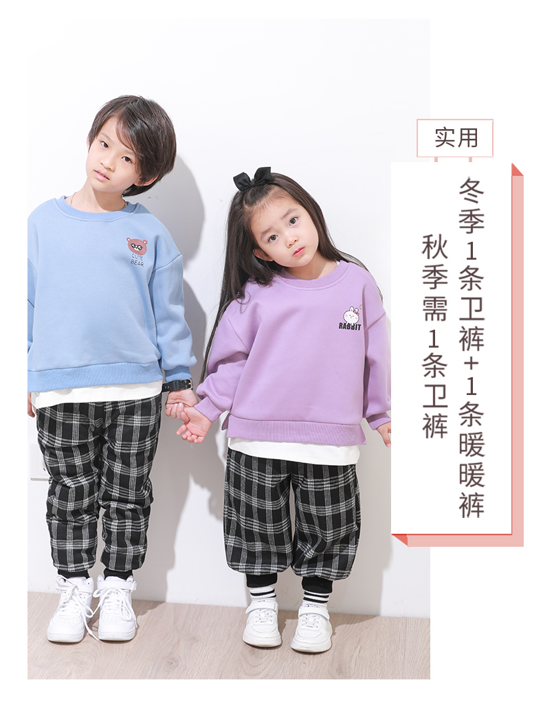 产品名称:亲子款提花格加绒卫裤