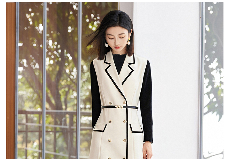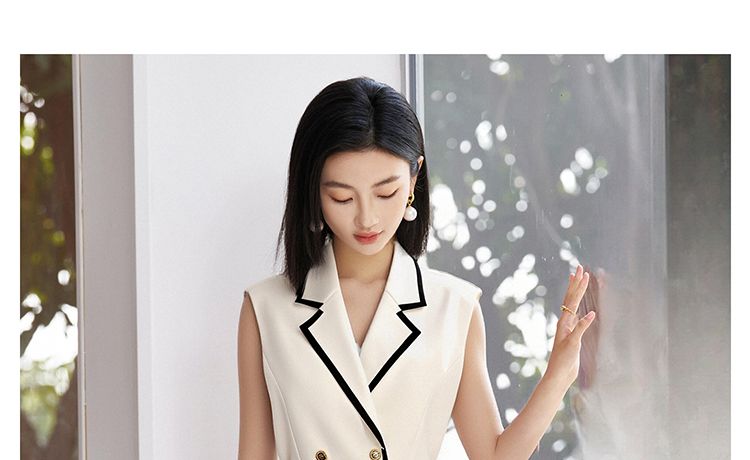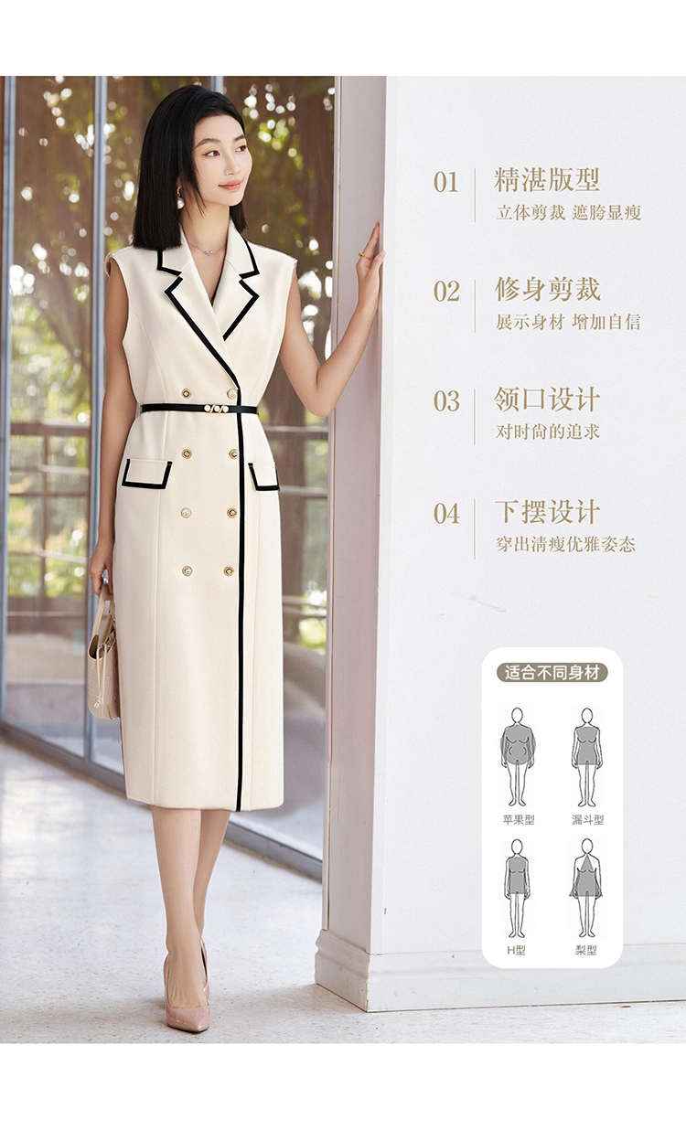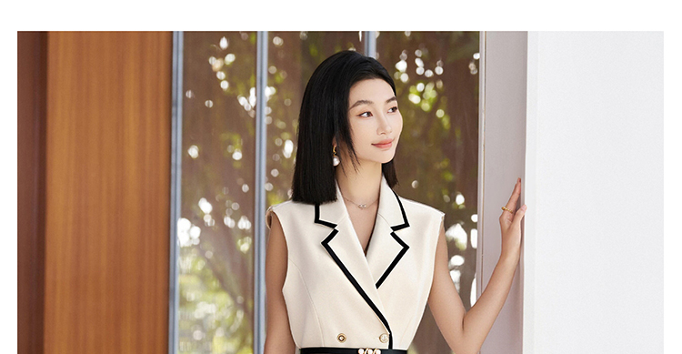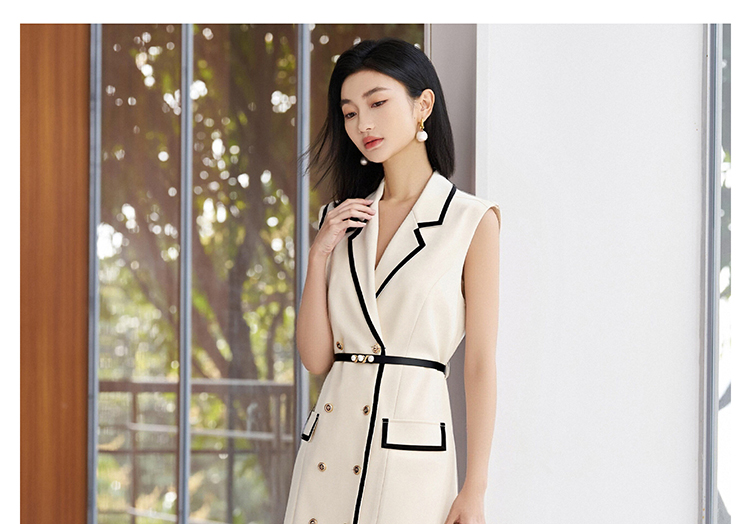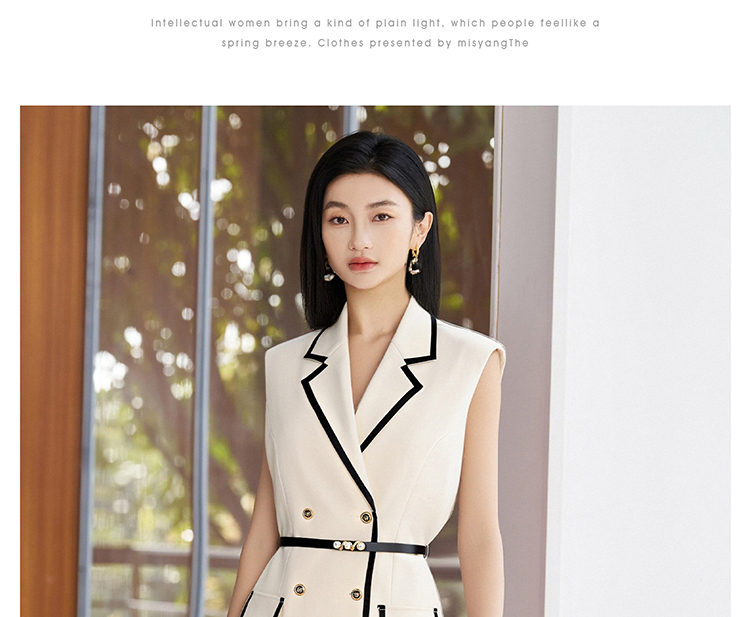 米思阳2026春季新品【撞色设计背心裙】春季时尚高级感无袖西装连衣裙4871