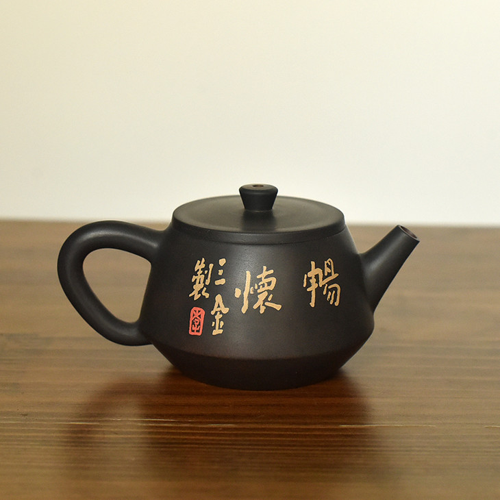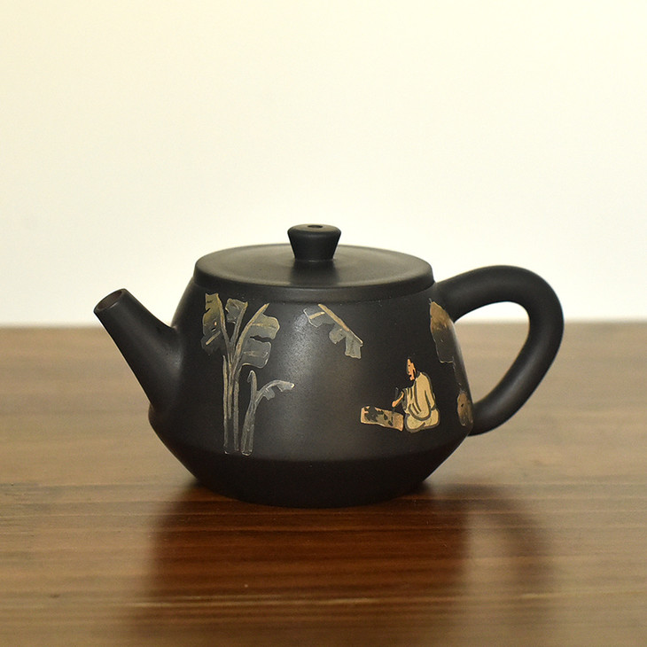 三金,本名李鑫,启正陶社社员,2010年在朝阳楼跟随半根先生学习制壶。三金制陶随性而发,平淡天真,器型古朴,装饰淡雅,常作闲人、傻鱼、呆僧图饰······生趣盎然。制陶应是玩,不作高态,能让喜欢的人观之用之心生愉悦,便是乐事。虽有不足,但制陶路漫漫,坚持下去,必有所收获。