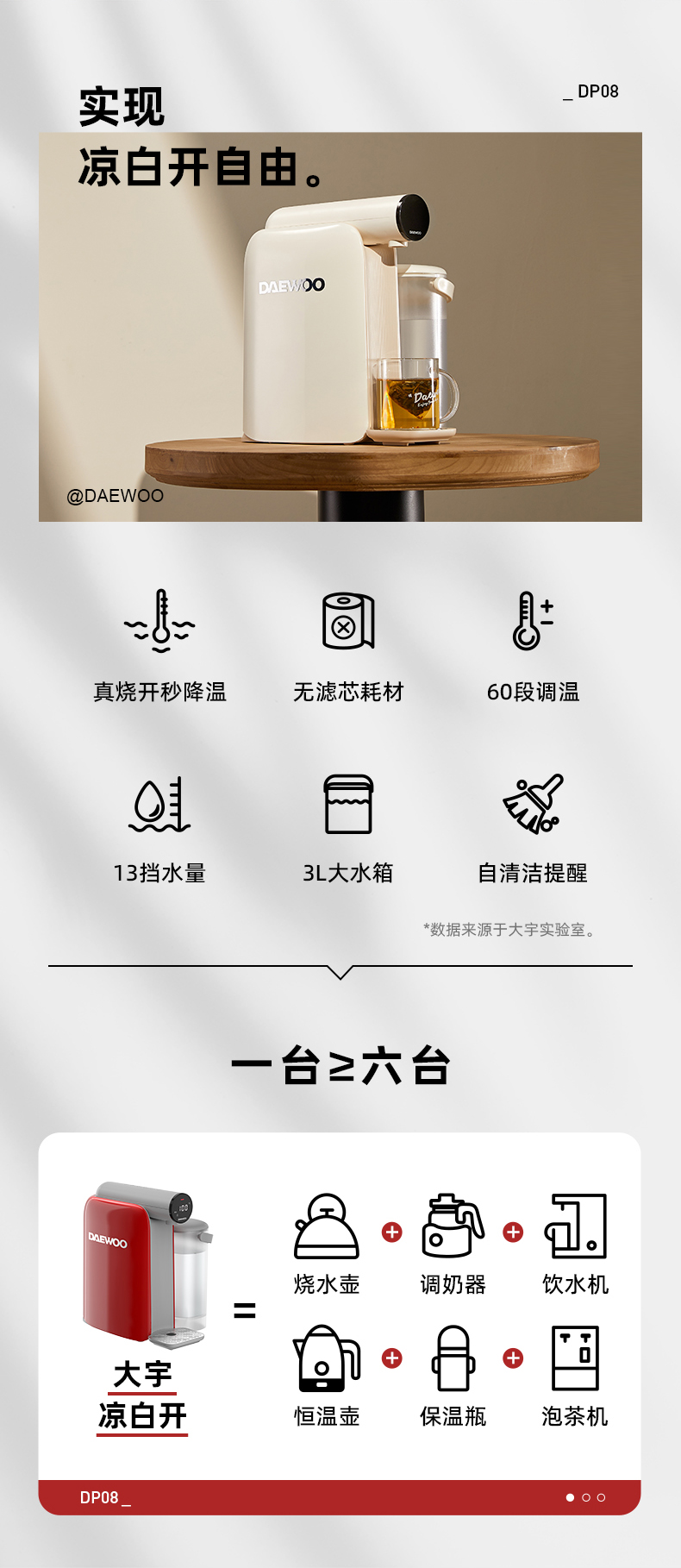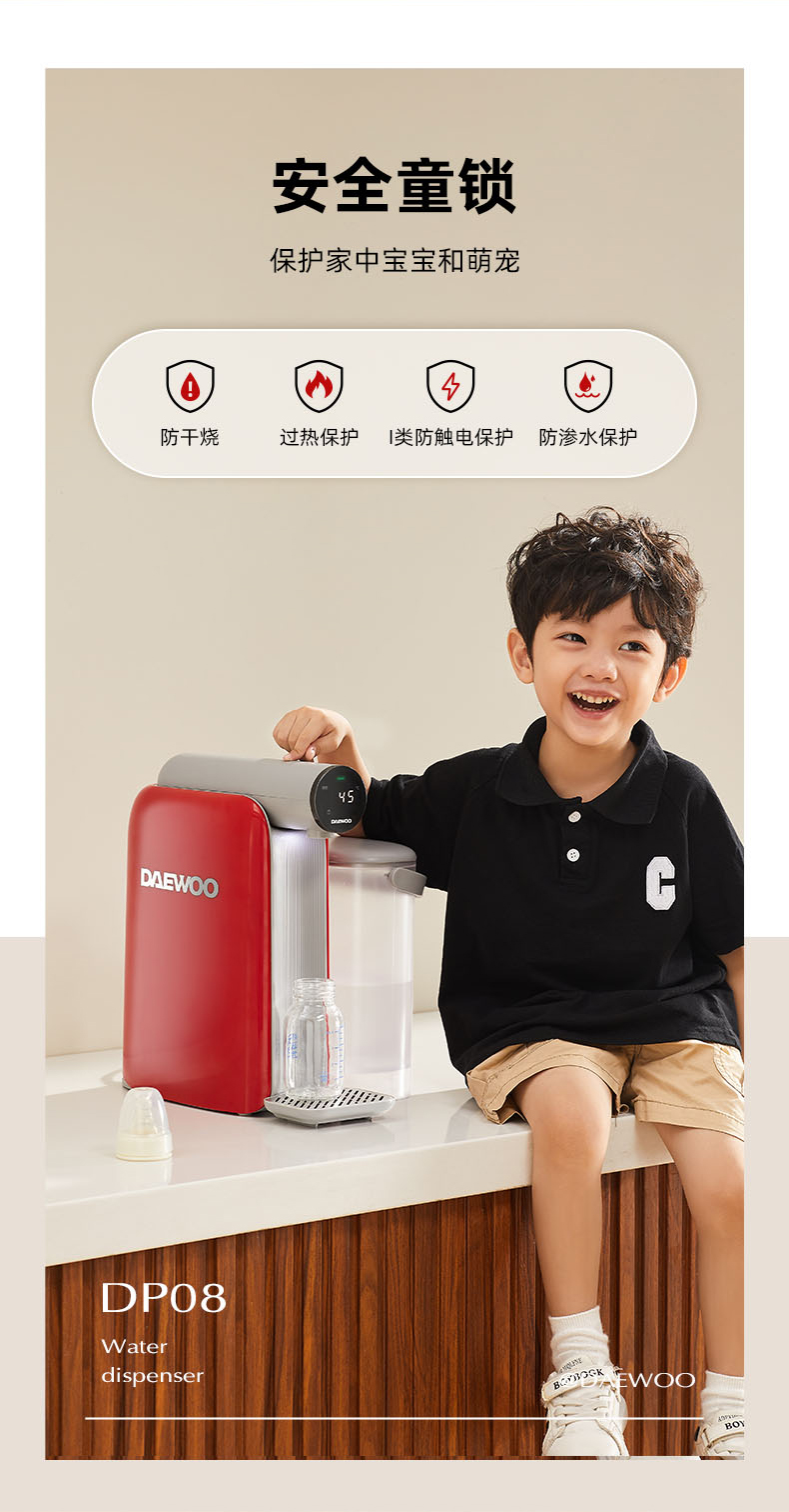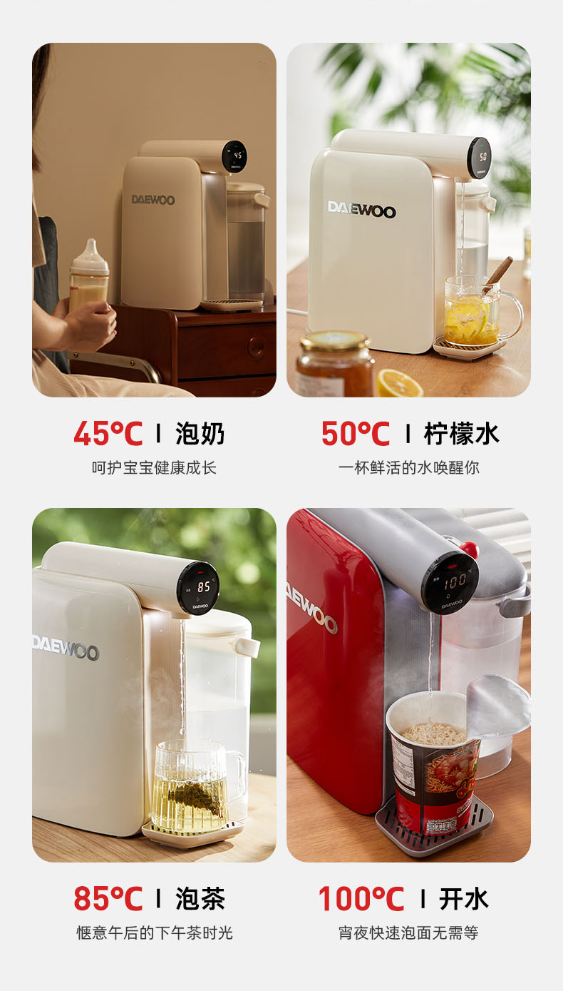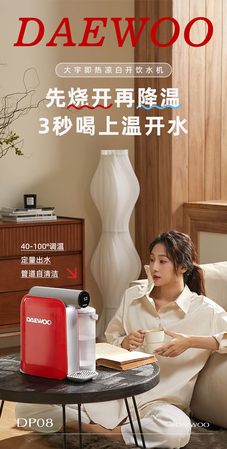 【真烧开秒降温】大宇即热凉白开饮水机DP08 即凉技术 3秒喝上温开水 60段调温 13档水量 无滤芯耗材 自清洁 3L大容量
