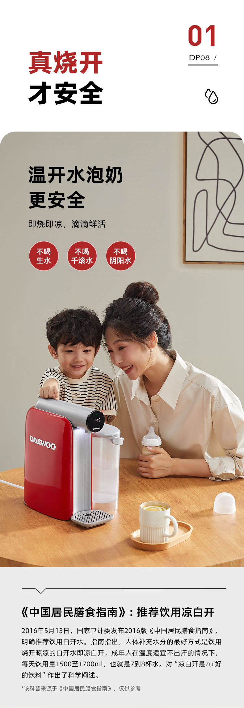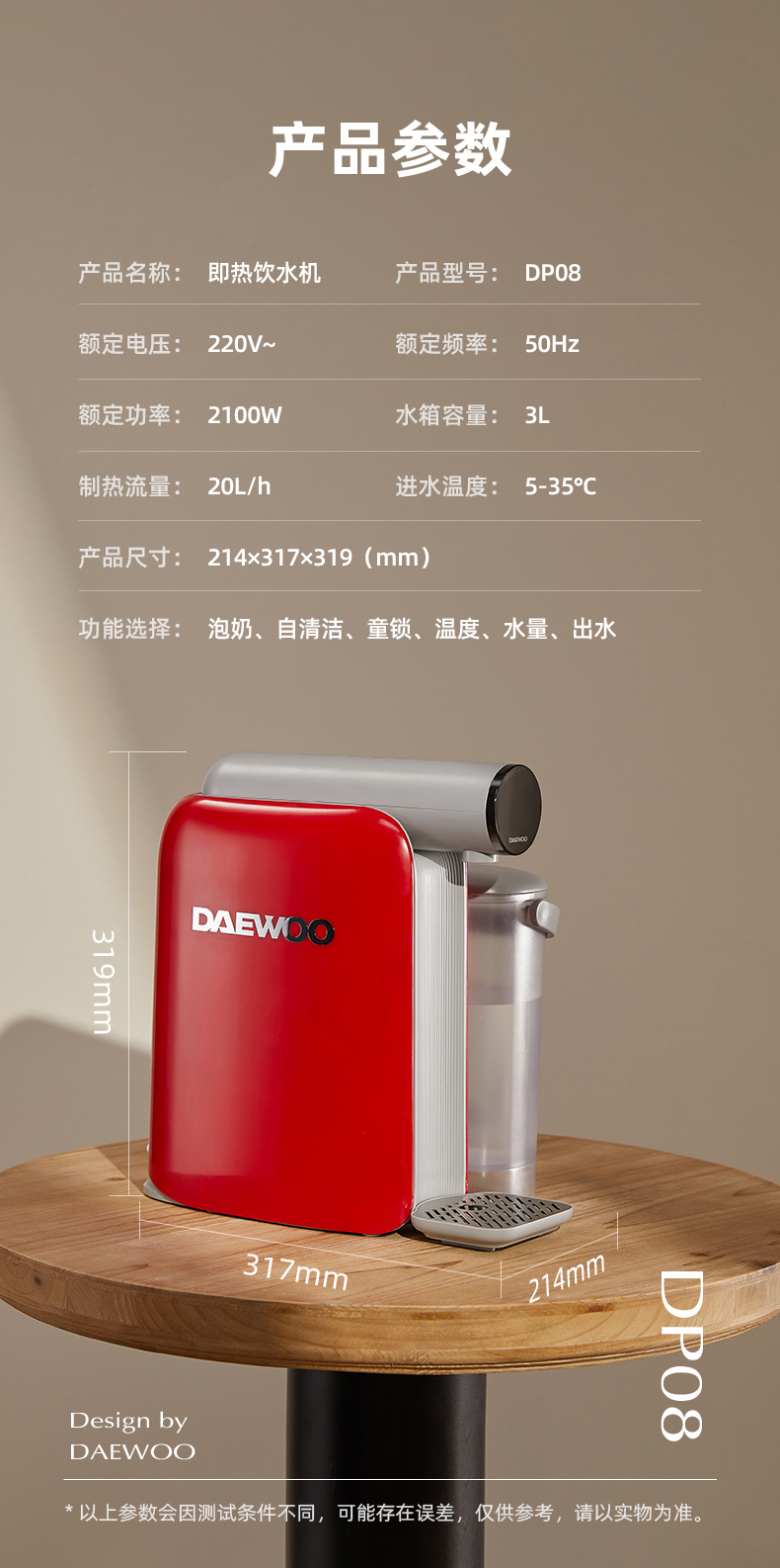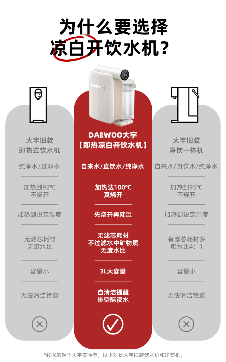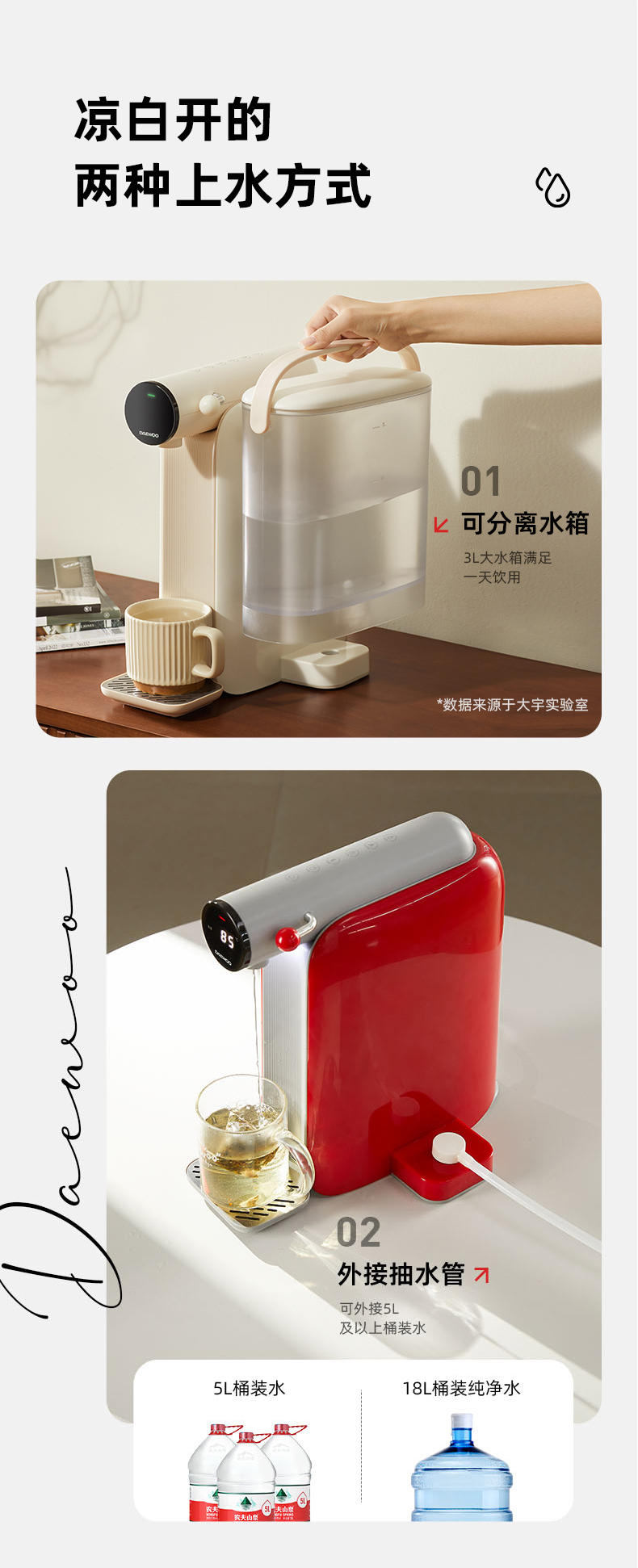 【真烧开秒降温】大宇即热凉白开饮水机DP08 即凉技术 3秒喝上温开水 60段调温 13档水量 无滤芯耗材 自清洁 3L大容量