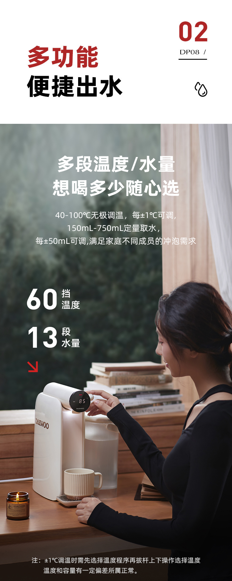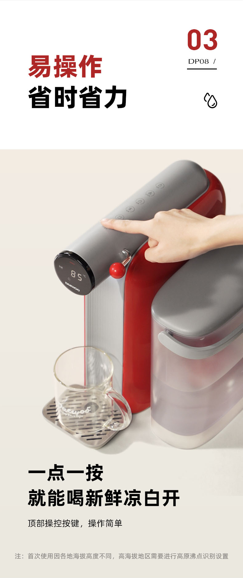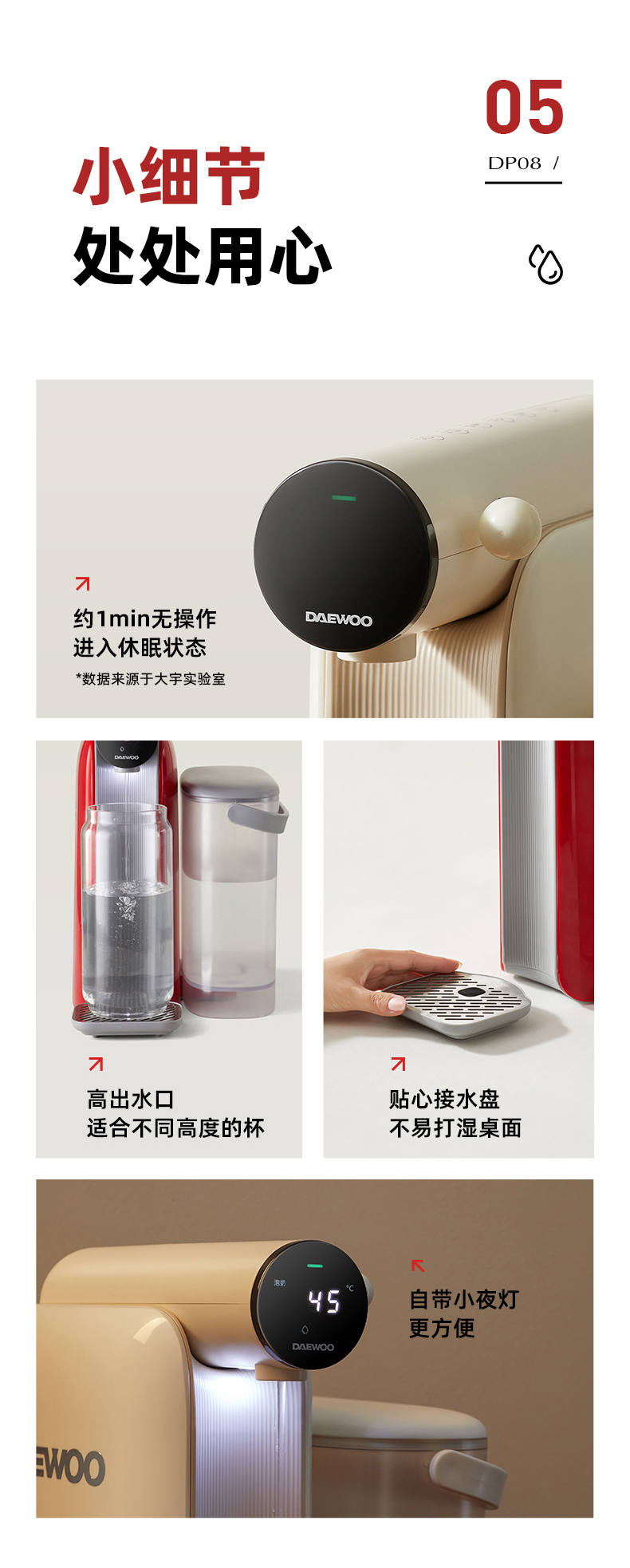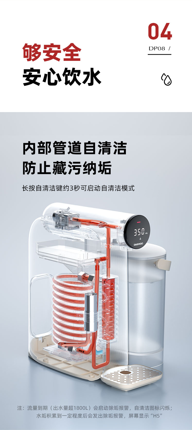【真烧开秒降温】大宇即热凉白开饮水机DP08 即凉技术 3秒喝上温开水 60段调温 13档水量 无滤芯耗材 自清洁 3L大容量
