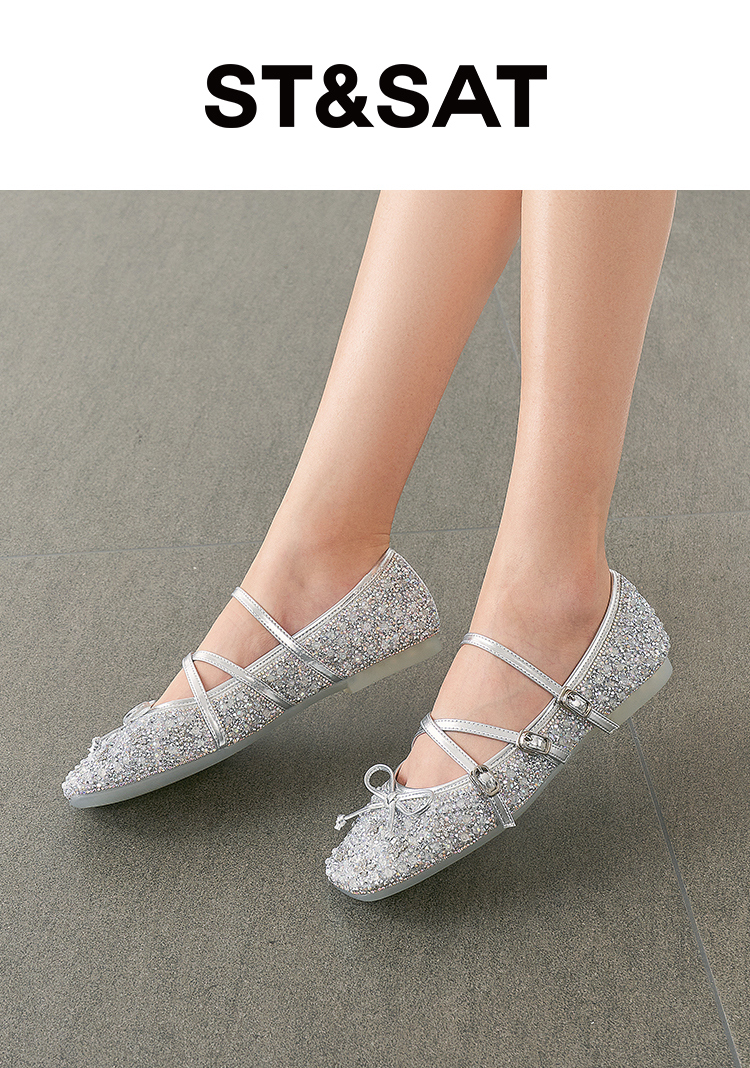 【闪闪幻银】星期六蝴蝶结水钻芭蕾平底鞋SSD3111490