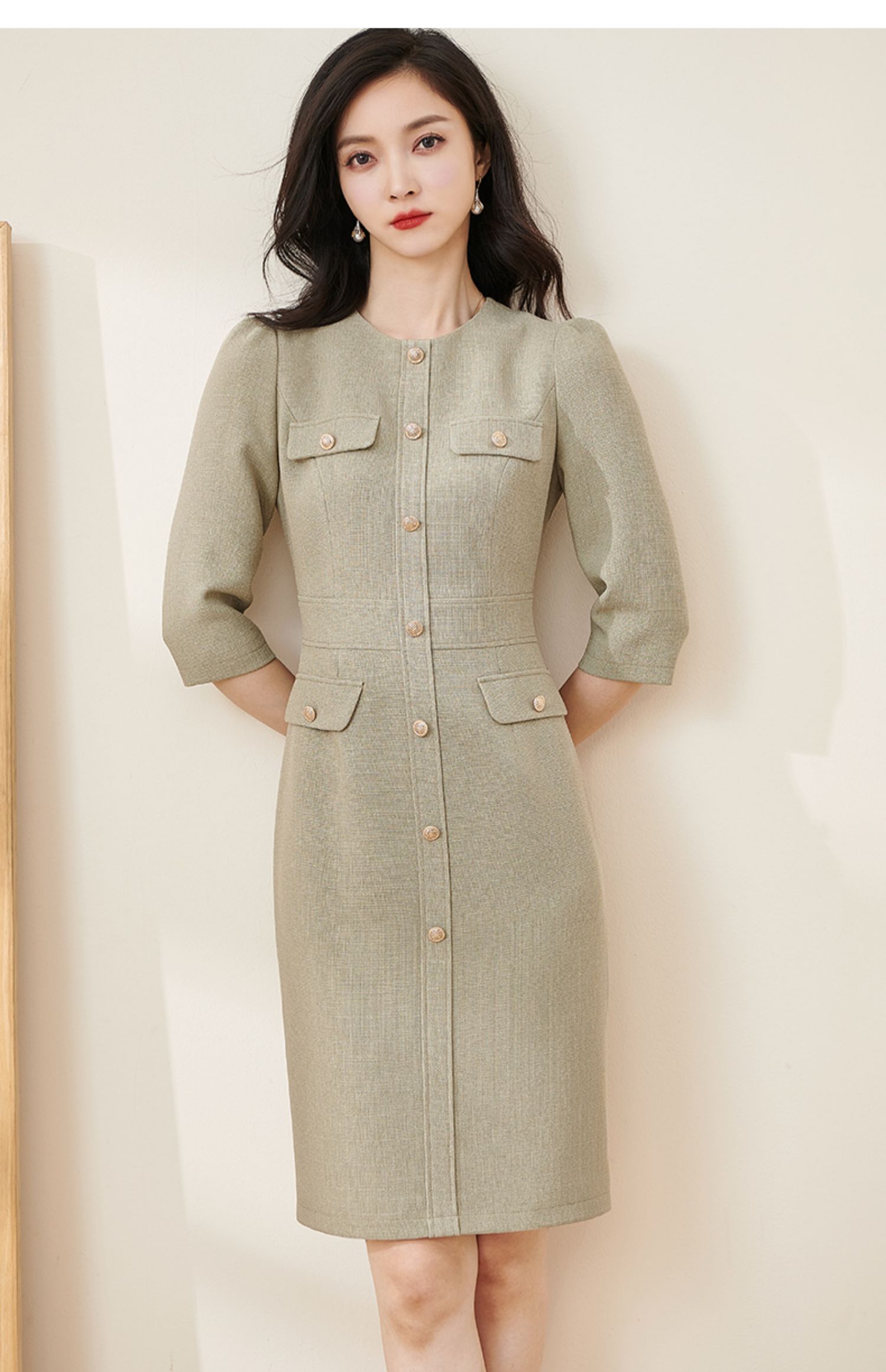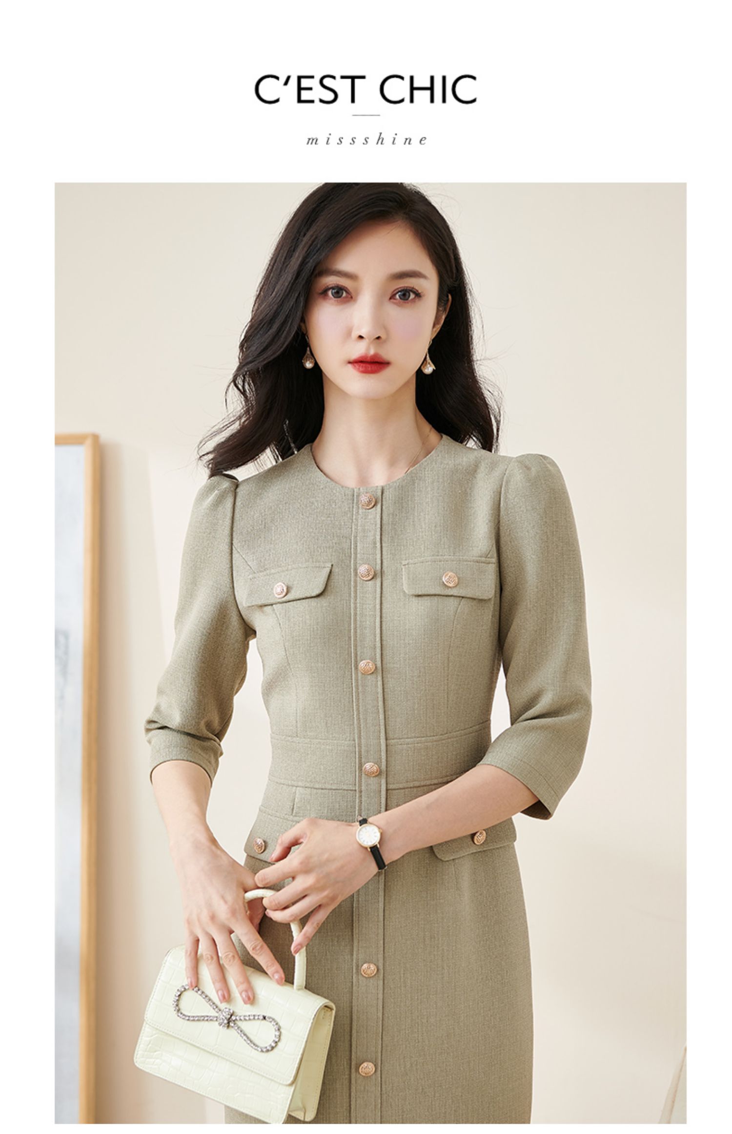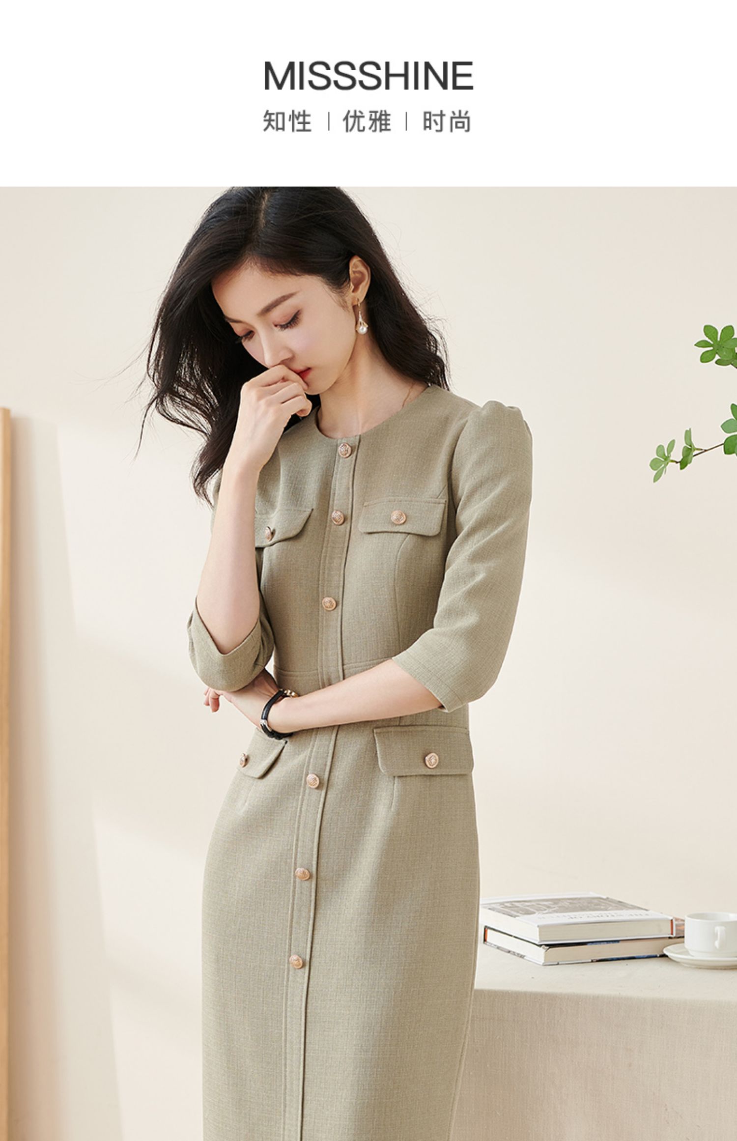米思阳2024春季新款轻奢小香风修身包臀裙收腰塑形醋酸连衣裙2093