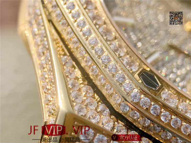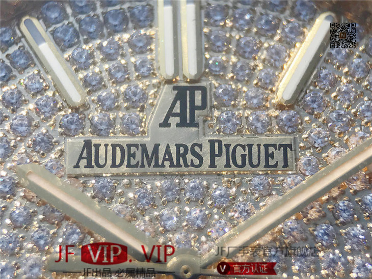 爱彼皇家橡树15400满天星系列 全表壳镶满钻 搭载9015改原装cal.3120超薄自动机芯 意大利牛皮表带 镶钻原装表扣 耗时一年技术改进 造出目前市面最薄满钻机械表 尺寸41mm*10mm