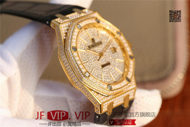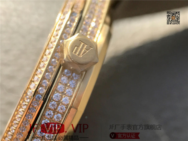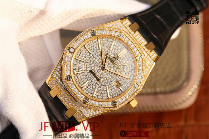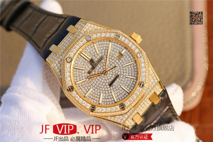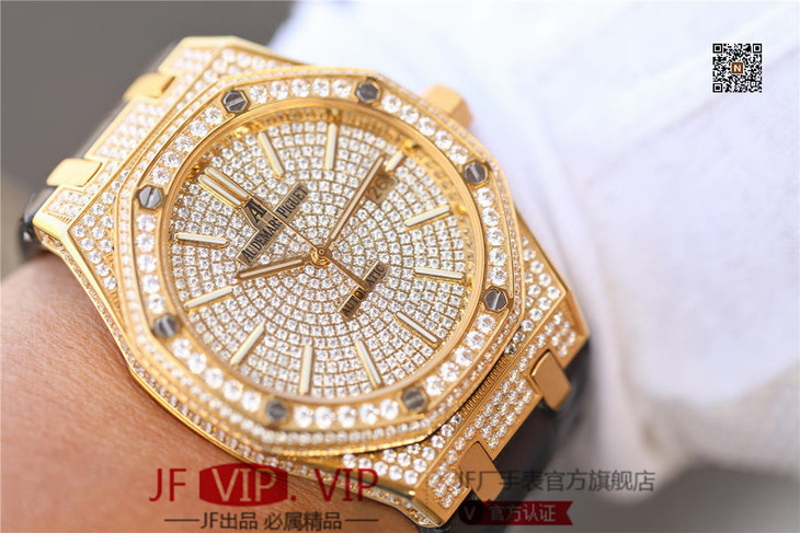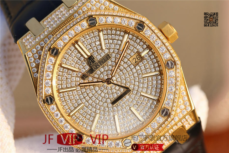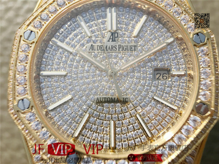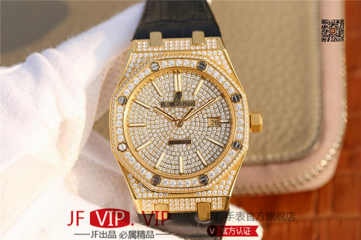 爱彼皇家橡树15400满天星系列 全表壳镶满钻 搭载9015改原装cal.3120超薄自动机芯 意大利牛皮表带 镶钻原装表扣