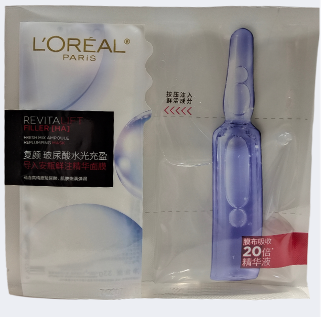 套组产品:欧莱雅复颜玻尿酸水光充盈导入安瓶面膜鲜注精华面膜(单片)*10片