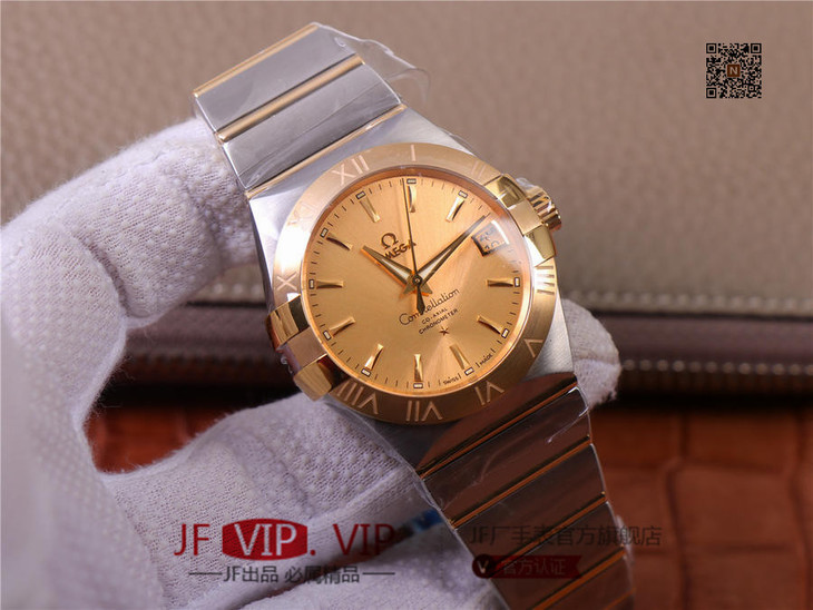 VS新品欧米伽:间金星座38mm,机芯唯一对版版本,认准自产8500 快调时针转换日期功能,女士腕表,自动机械机芯,精钢表带