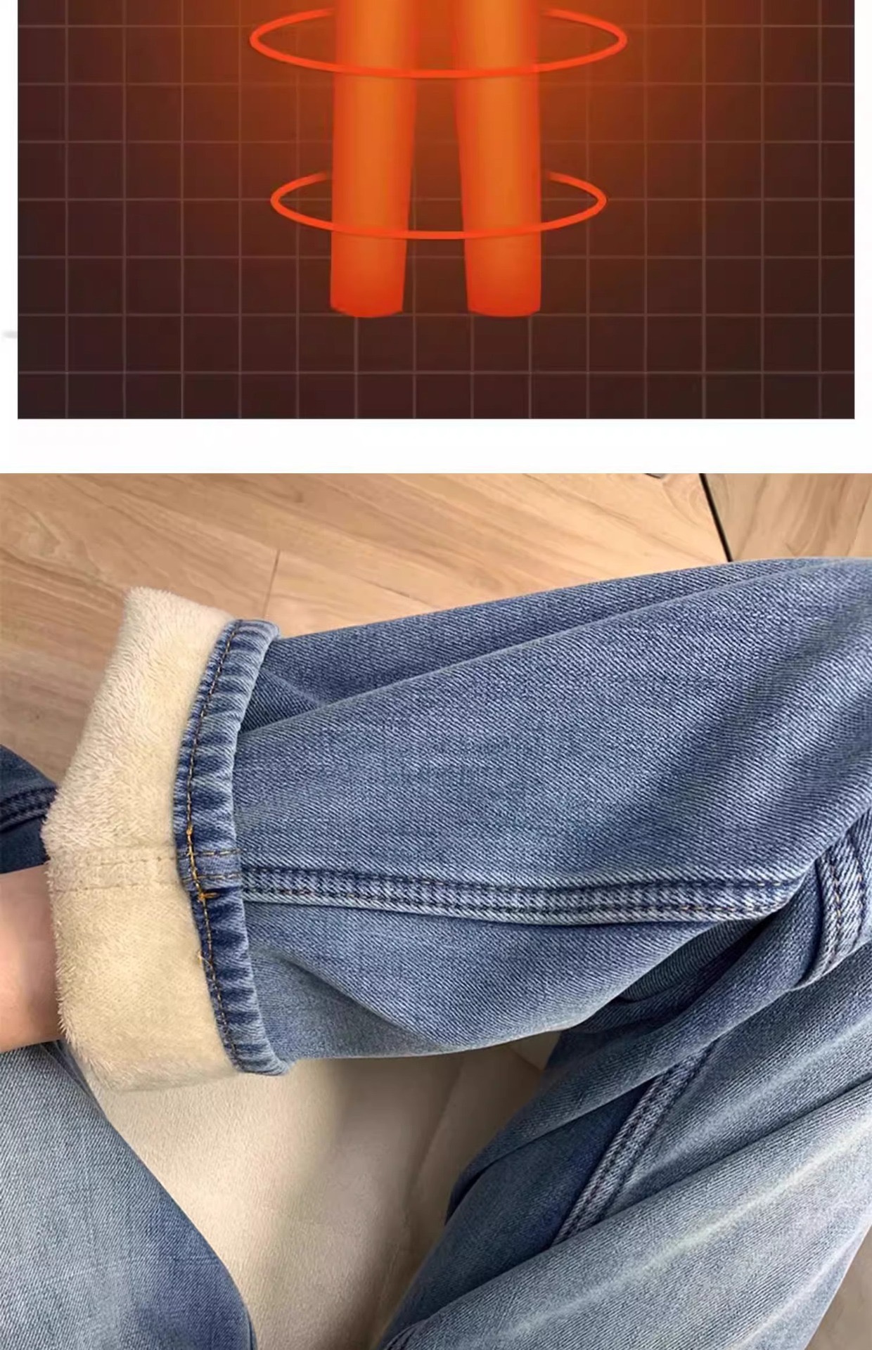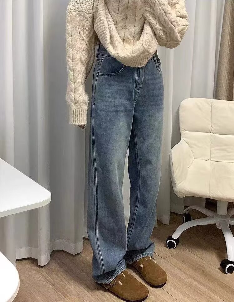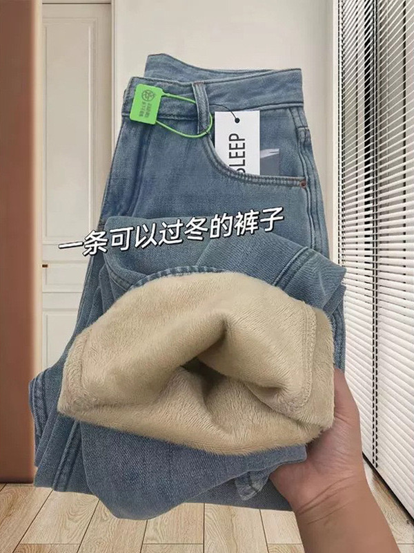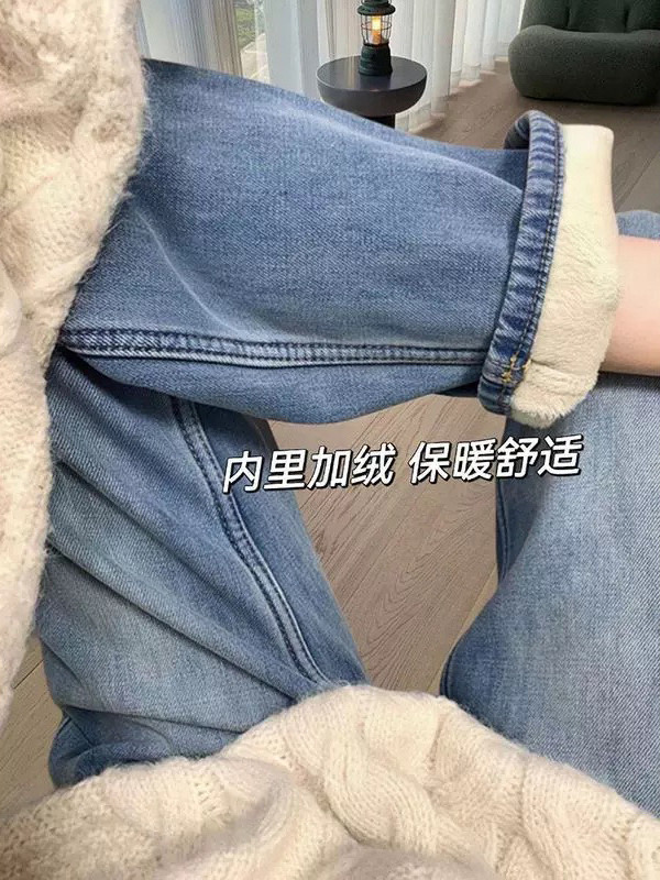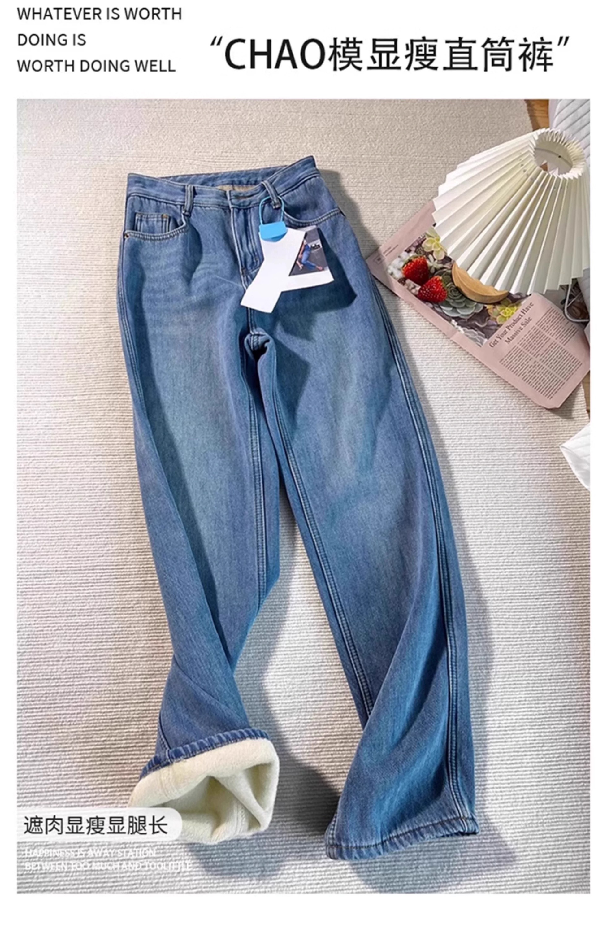 【GZ】无忧购韩版宽松显瘦窄版梨形身材阔腿加绒牛仔裤6921(截单后7天发货)25年清仓捡漏