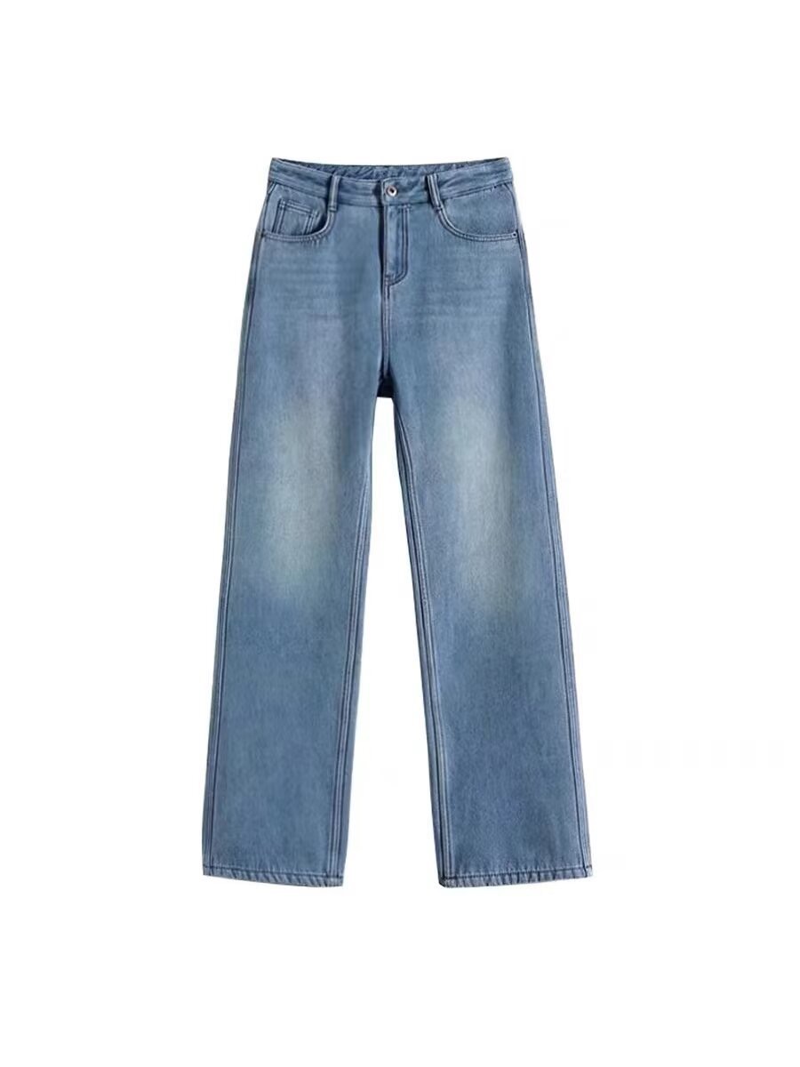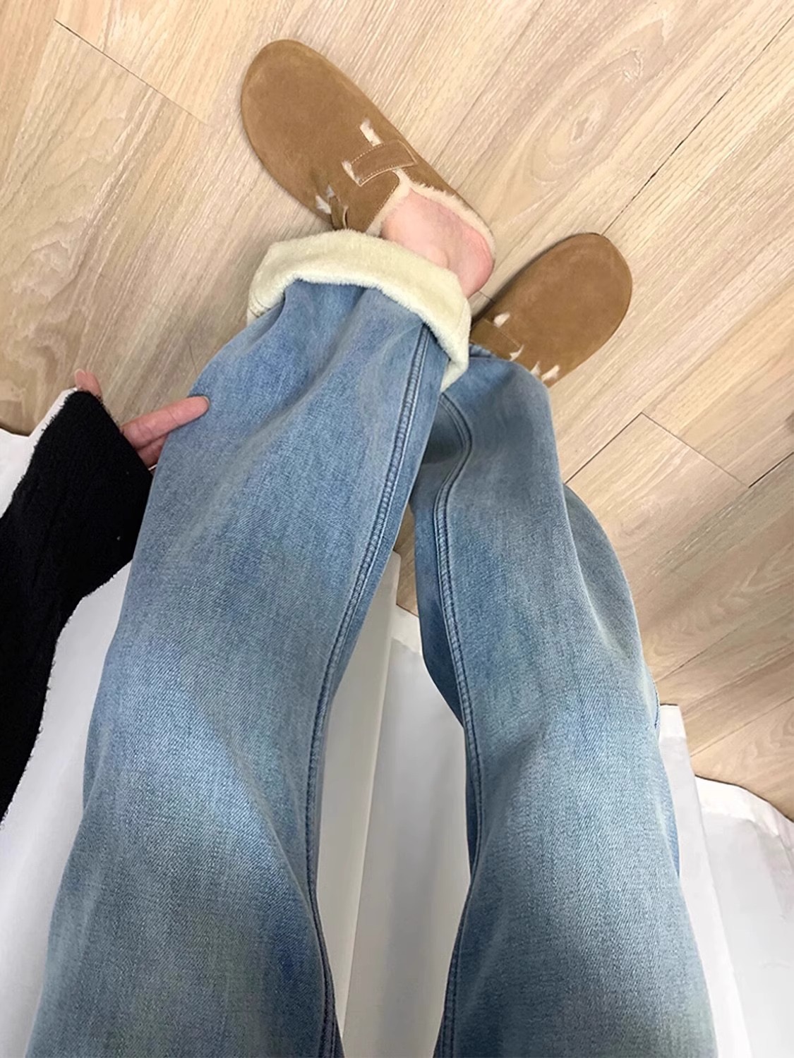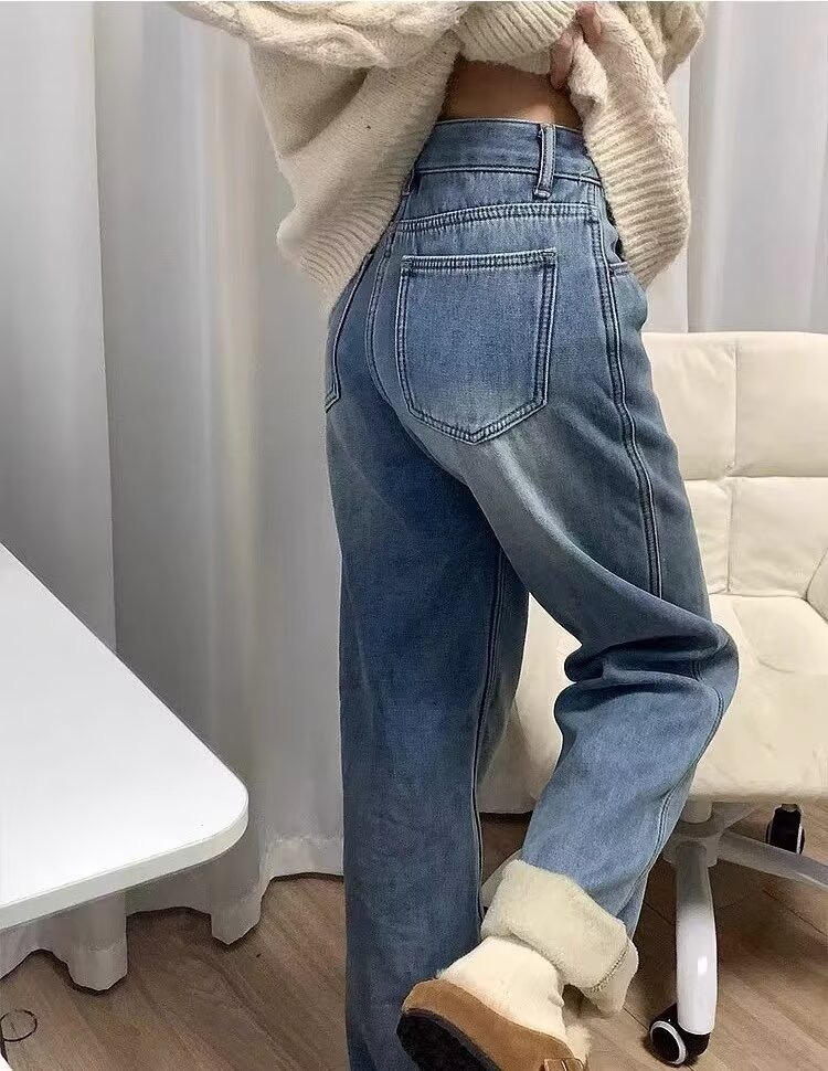 【GZ】无忧购韩版宽松显瘦窄版梨形身材阔腿加绒牛仔裤6921(截单后7天发货)25年清仓捡漏