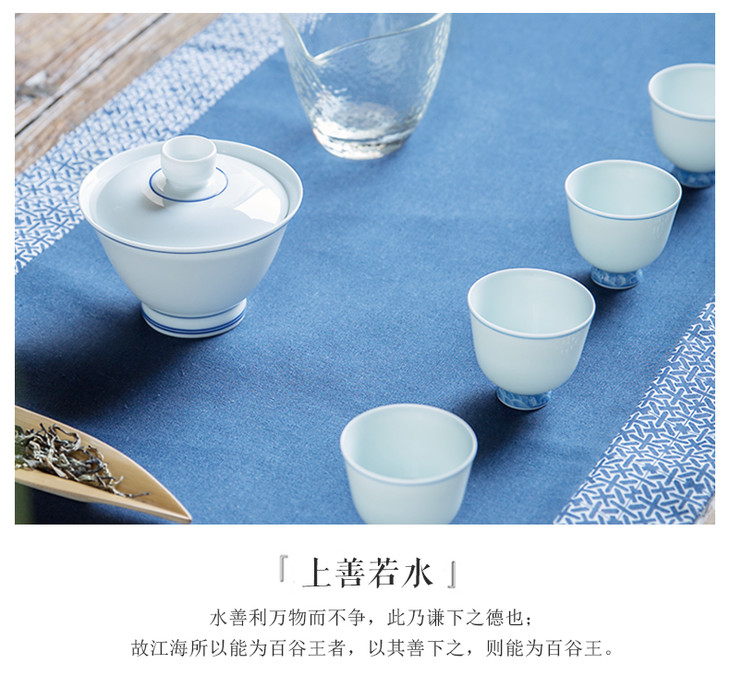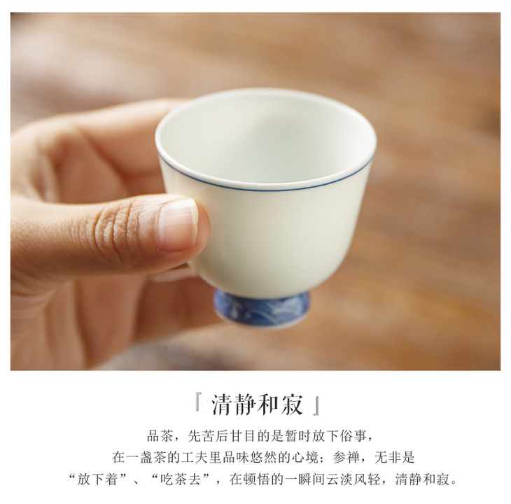 景德镇陶瓷功夫茶具.景德镇手工手绘青花瓷品茗杯小单杯(青花海水纹)