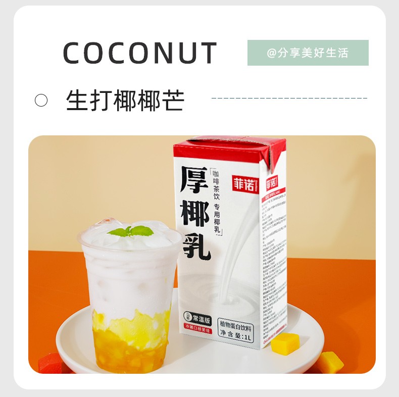 1kg 菲诺 厚椰乳 咖啡茶饮专用椰乳 椰香醇厚商用厚椰乳椰浆