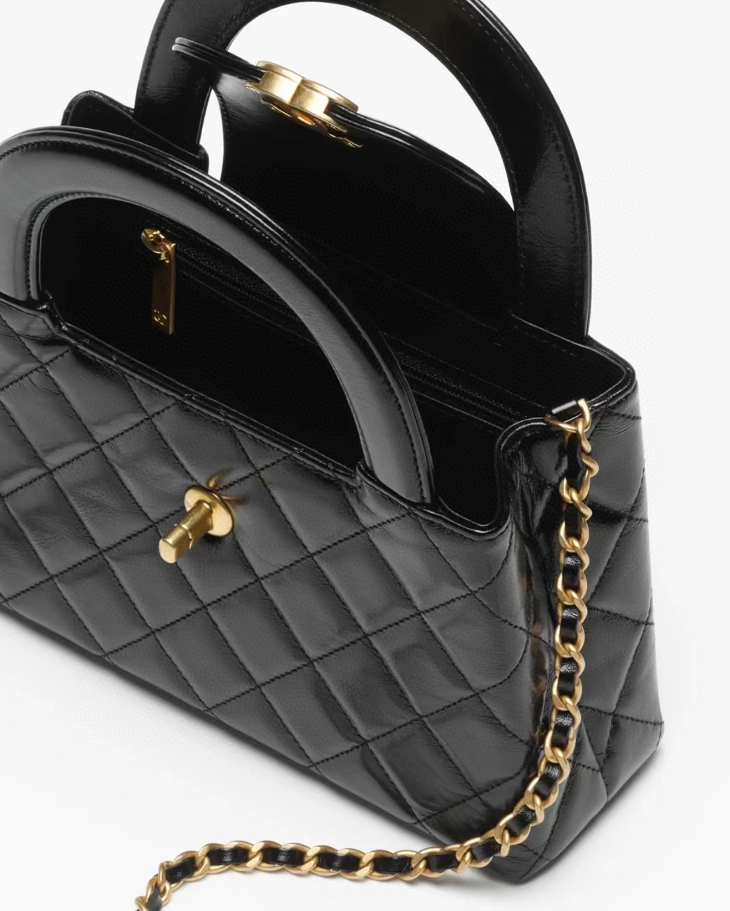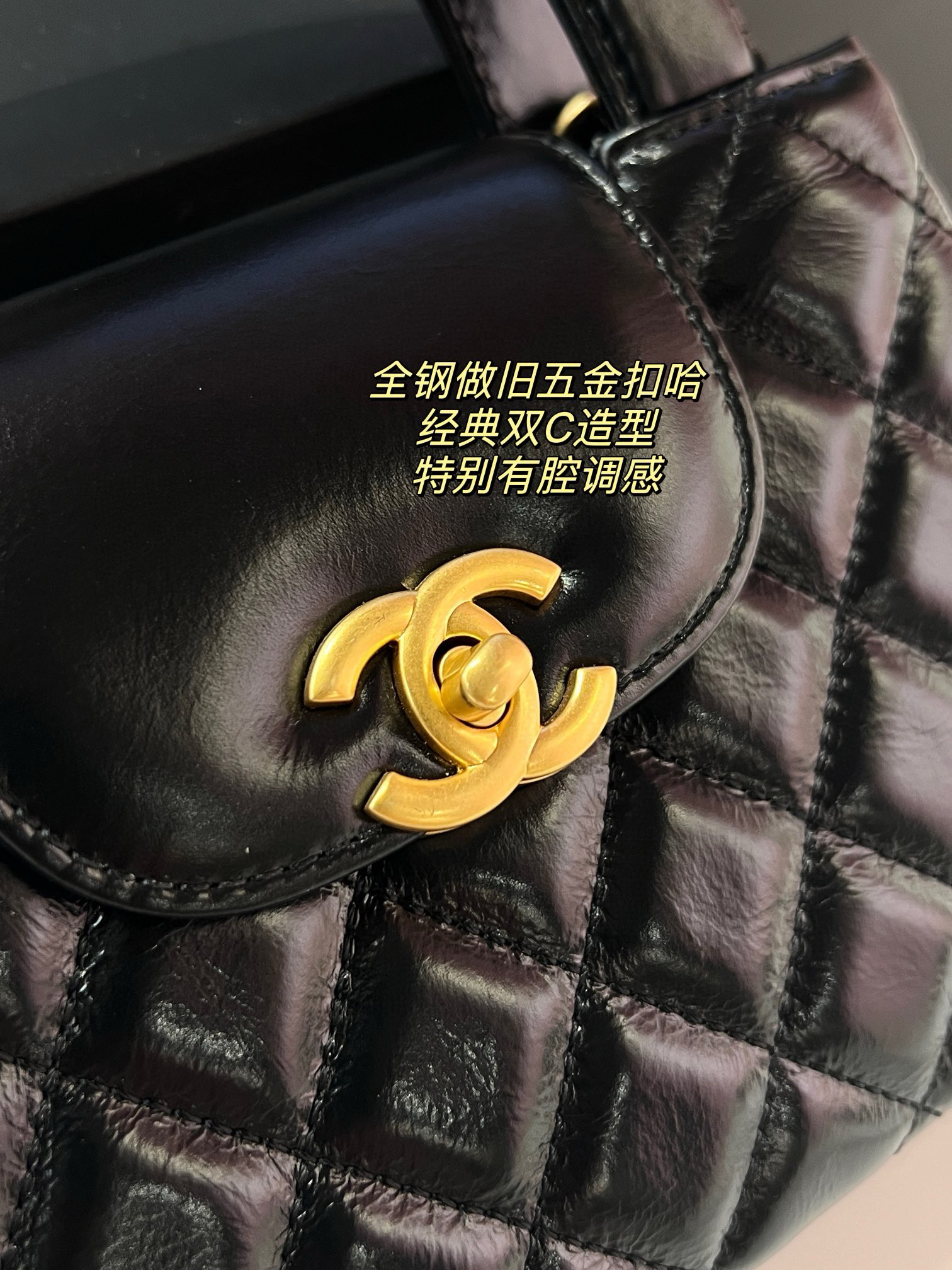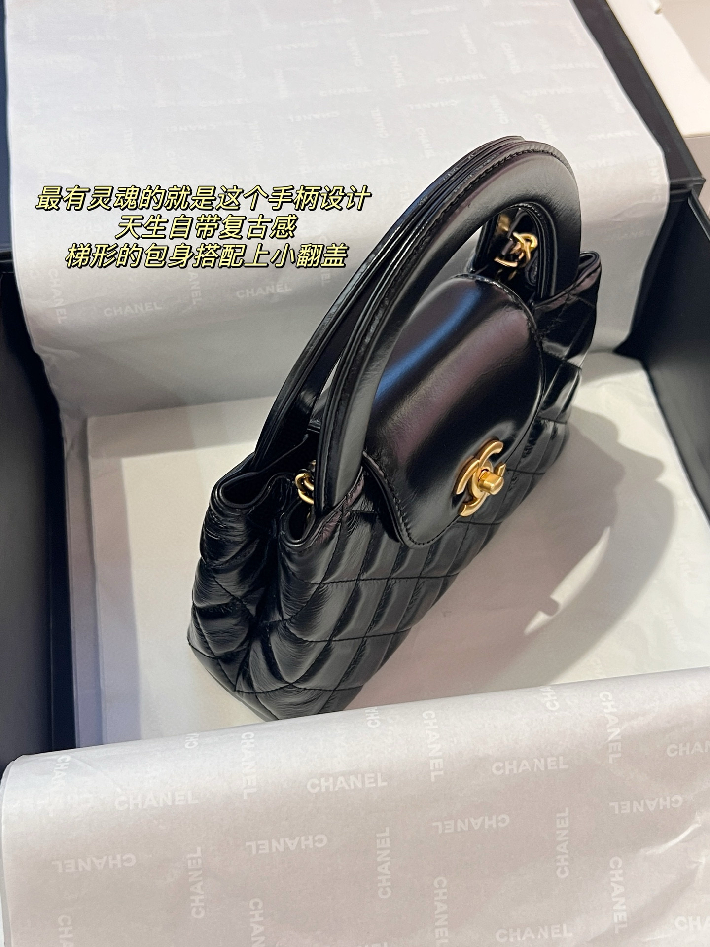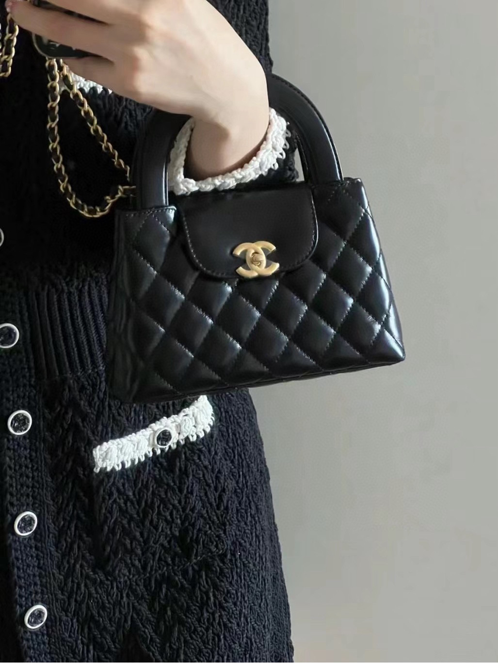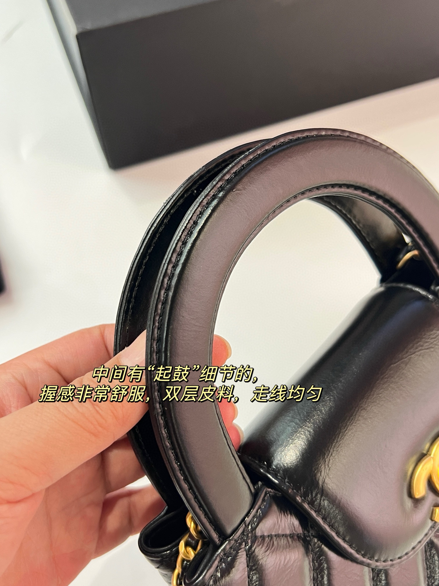 🔺CHANE*| 23K小香kelly手袋来了哈,秀场款的,这个包可以说是今年所有包款里面的"显眼包"存在了,经典复刻的半月包型,也是他家很经典的一款手提包型,熟悉的老铁都知道,但凡品牌自己复刻中古款的包包,基本都是"经典永流传"的节奏。全新23k是增加了菱格纹绗缝工艺的,大身更加气质优雅,也是香家很有辨识度的经典元素,这一只国内未上市的时候就已经是疯狂加价代购的节奏,柜子一只三万多,基本都是溢价出,也是"一包难求"。有肩带哈,不可拆卸、不可调节,不过可以自己DIY一下,全套包装哈,新年款的手提包必留款,Y皮Y版,顶级产物,现货一批‼️