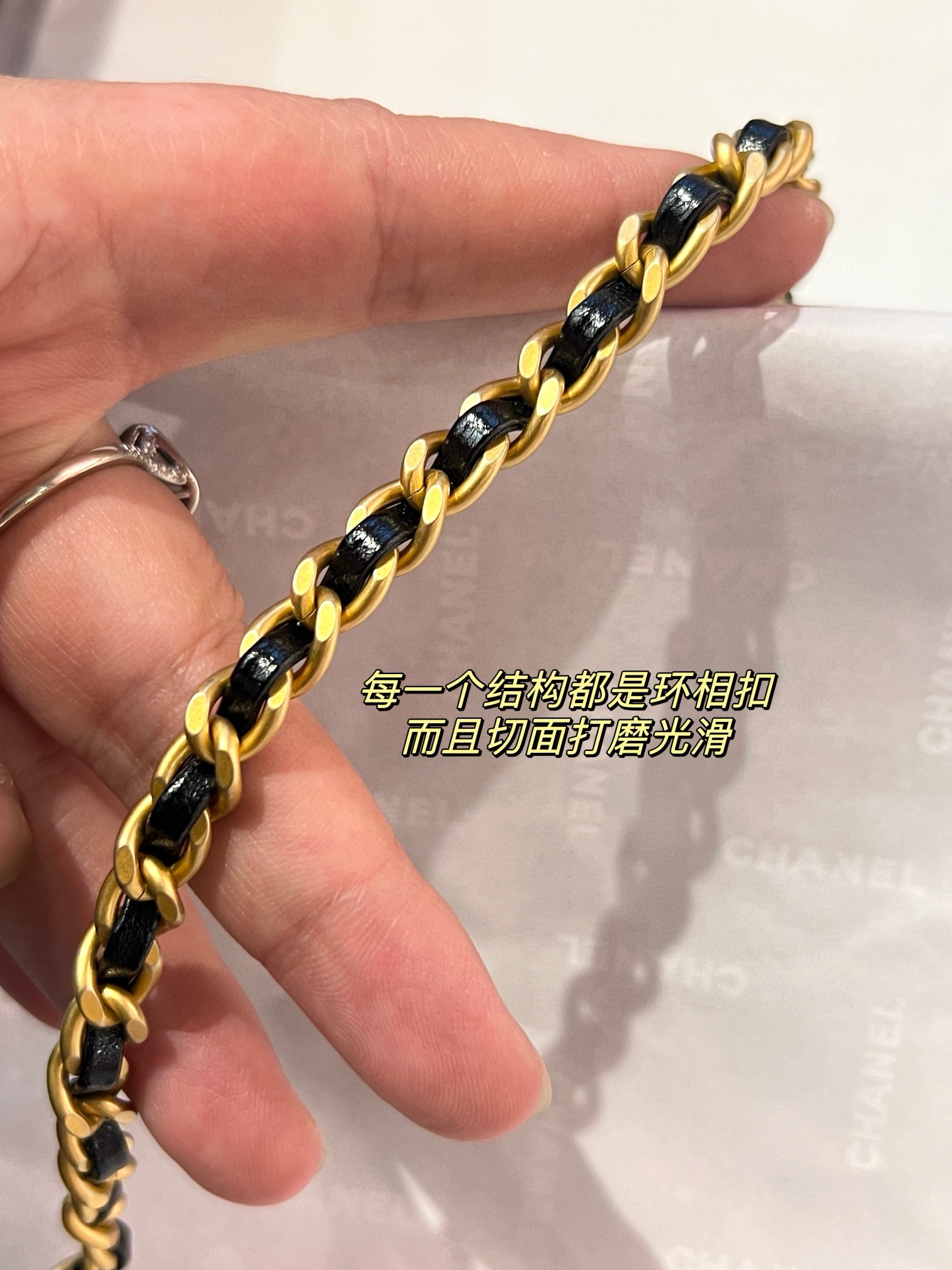 皮穿链条可以说是香家最具辨识性符号之一的元素了金属链条打磨光滑严谨,没有任何毛疵