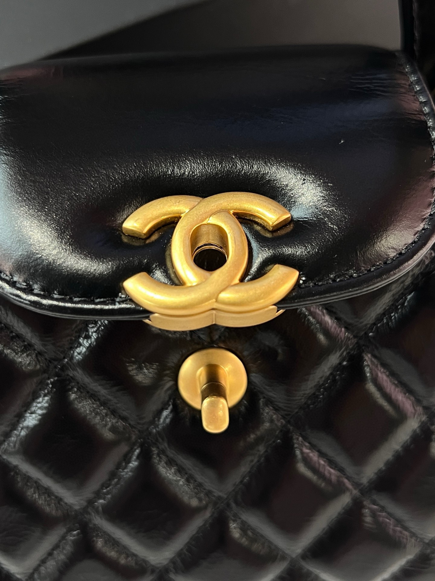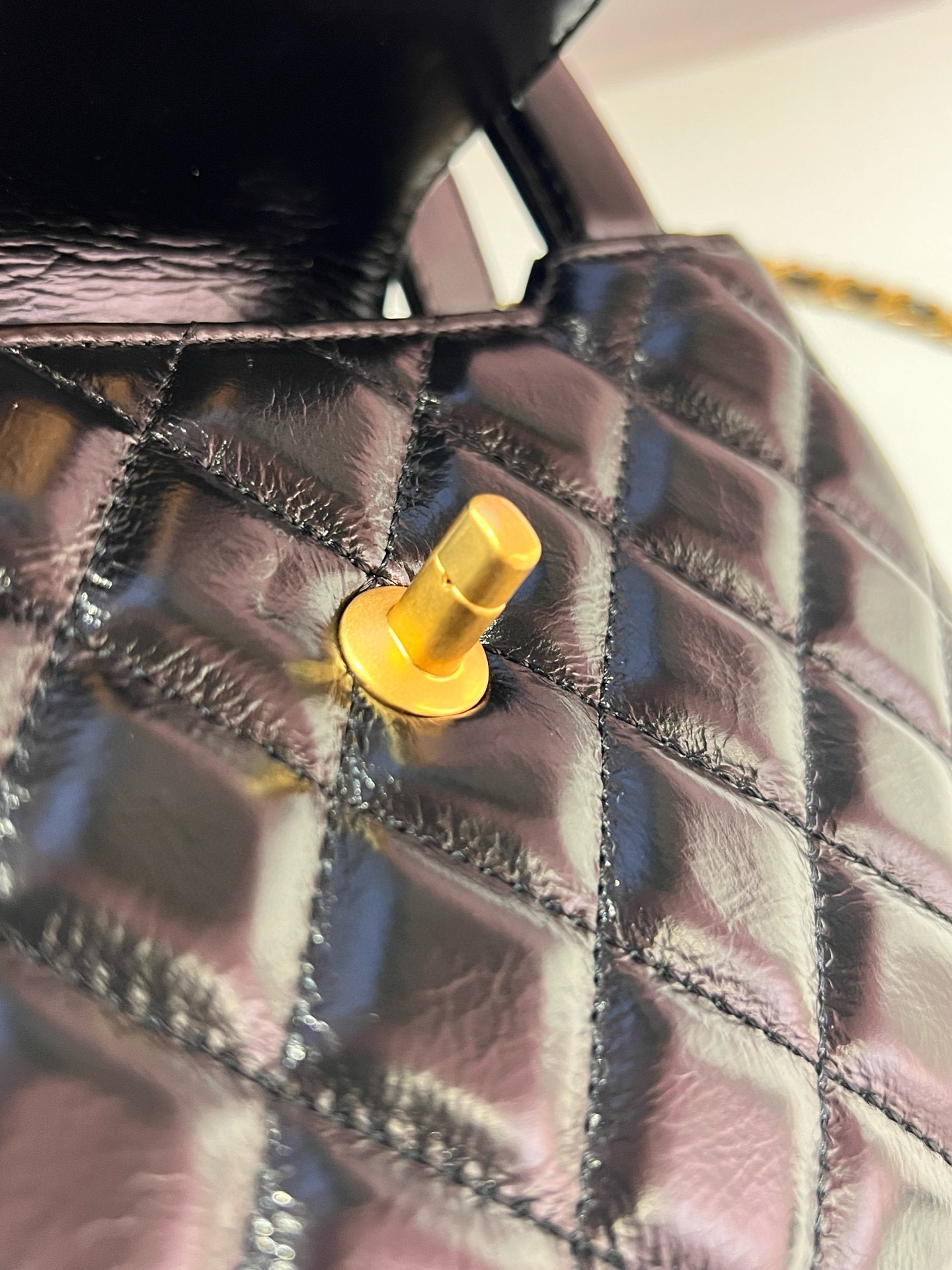 ➡️包身皮料全部都是小香御用的油蜡牛皮哈,表面是有一点褶皱感的,要的就是这种复古怀旧的质感。包身皮料光泽度非常高哈,各个角度看过来都是没有死角的,摸起来手感也是油润细腻,小牛皮做出了小羊皮的感觉。