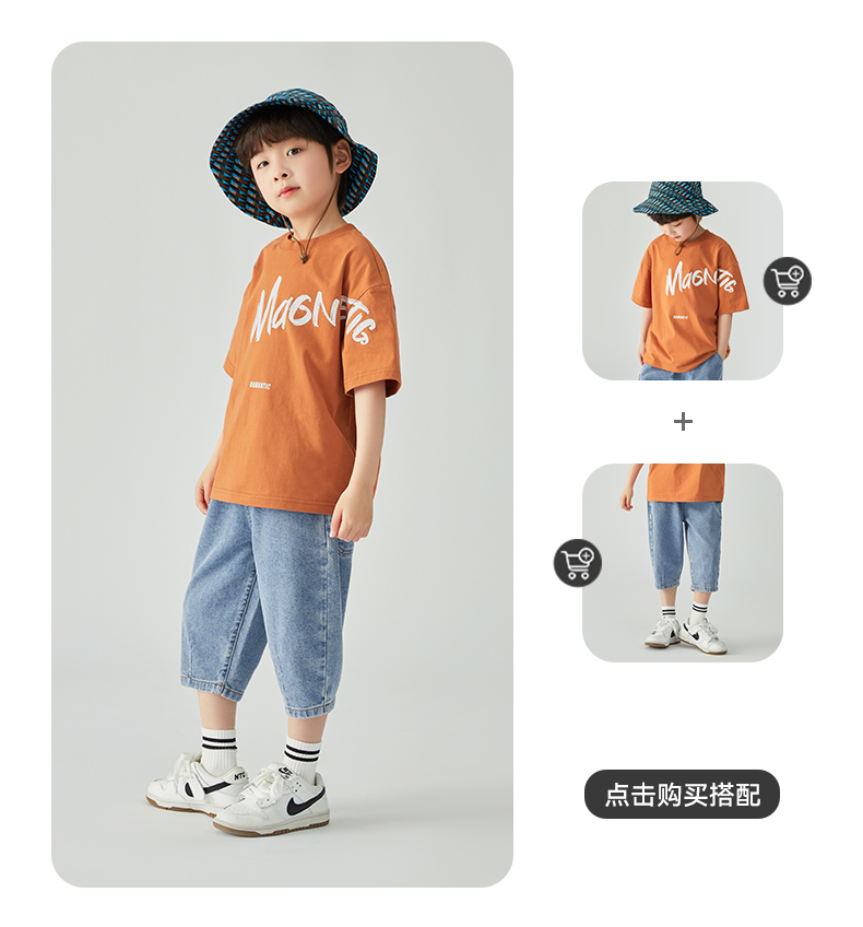 【团购价29.9-39.9】多多家 男童短袖T恤2025夏装新款儿童中大童夏季纯棉印花半袖上衣9377