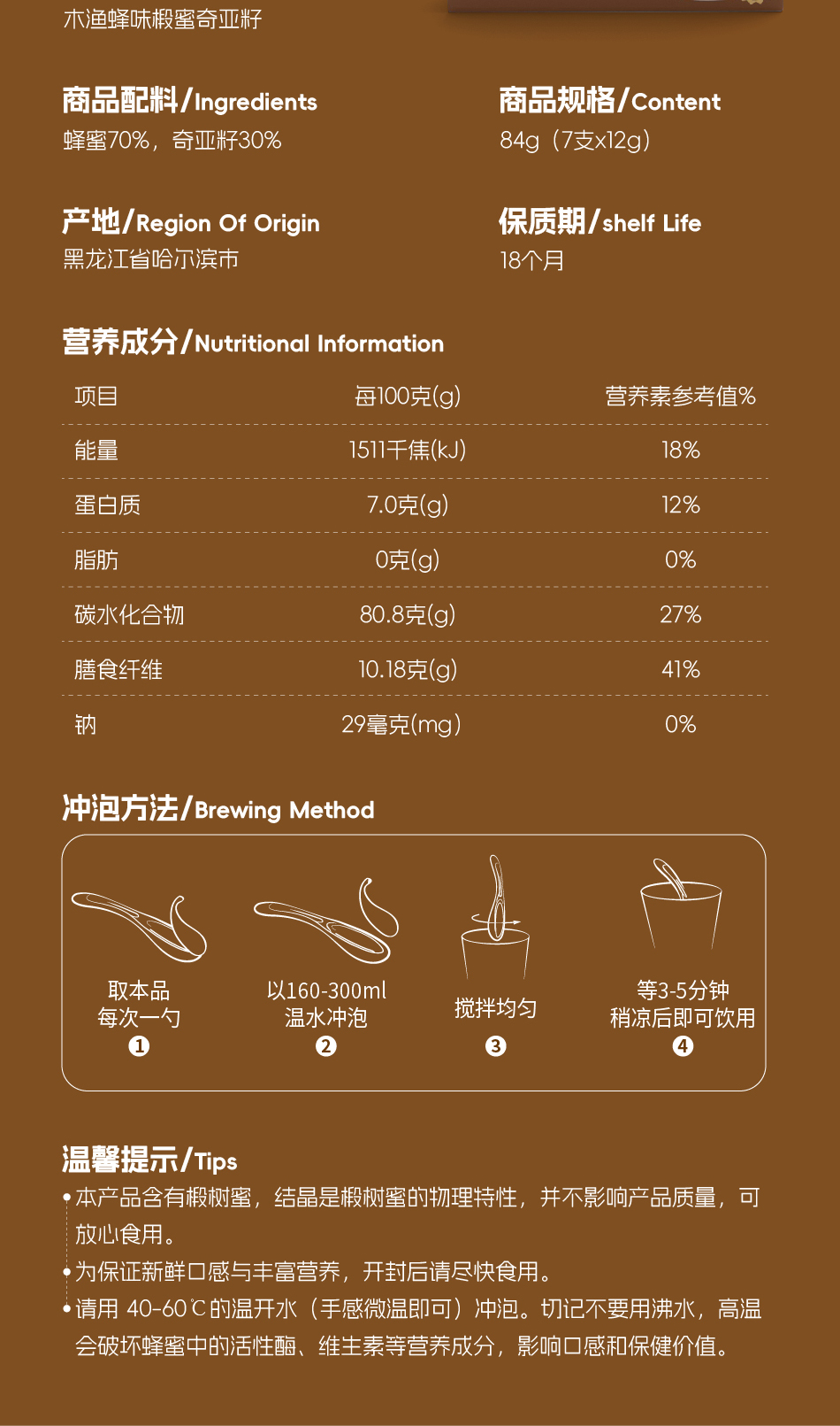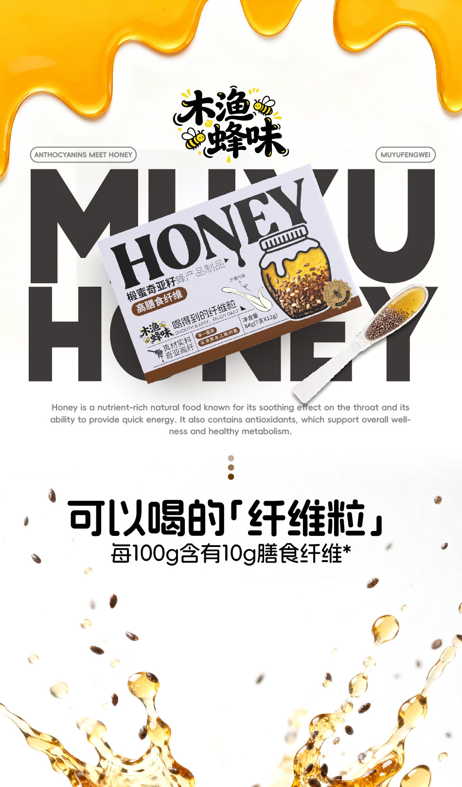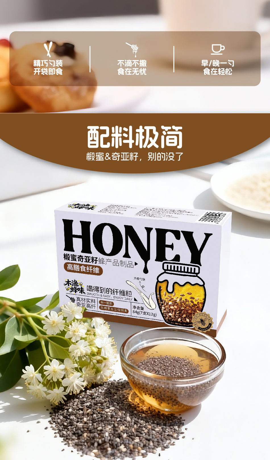 「木渔蜂味」椴蜜奇亚籽 吃得到的纤维粒 真材实料 高纤饱腹 清甜滋润 7支*12g