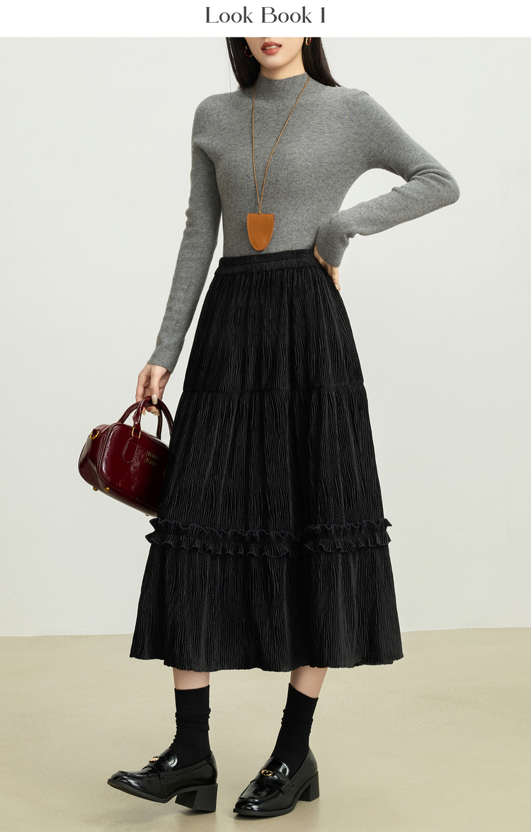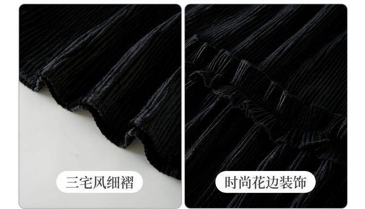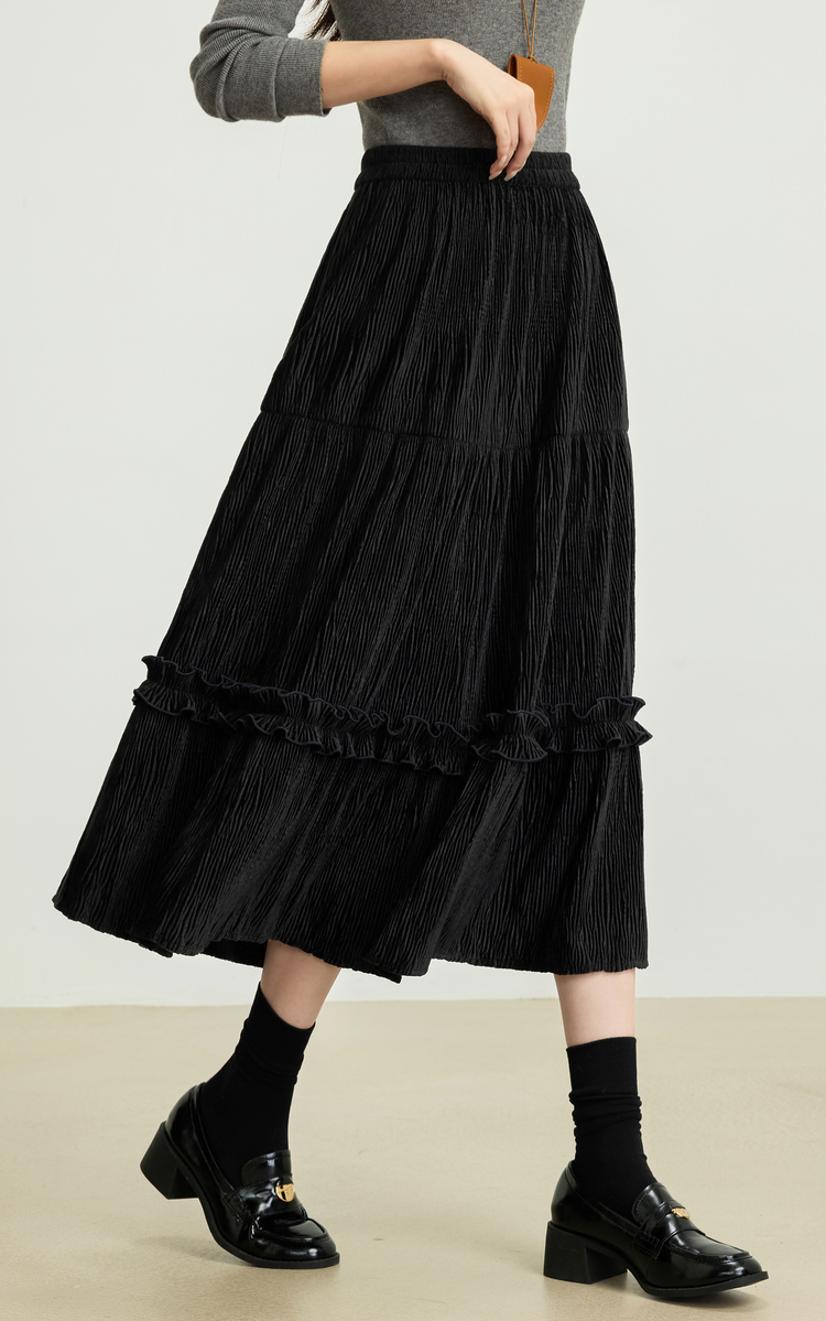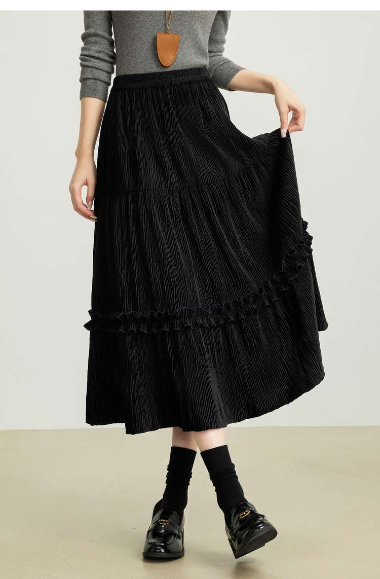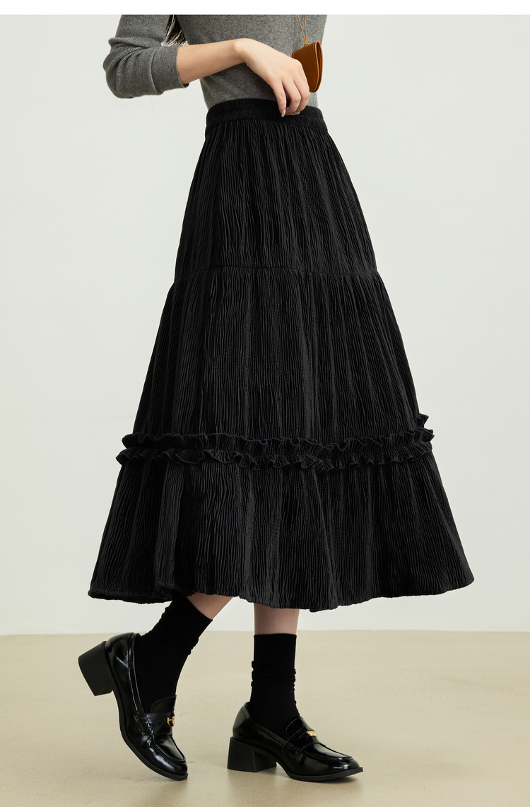 【11/19新品】熙世界三宅风木耳边丝绒半身裙女2025秋冬款高腰遮胯显瘦a字长裙